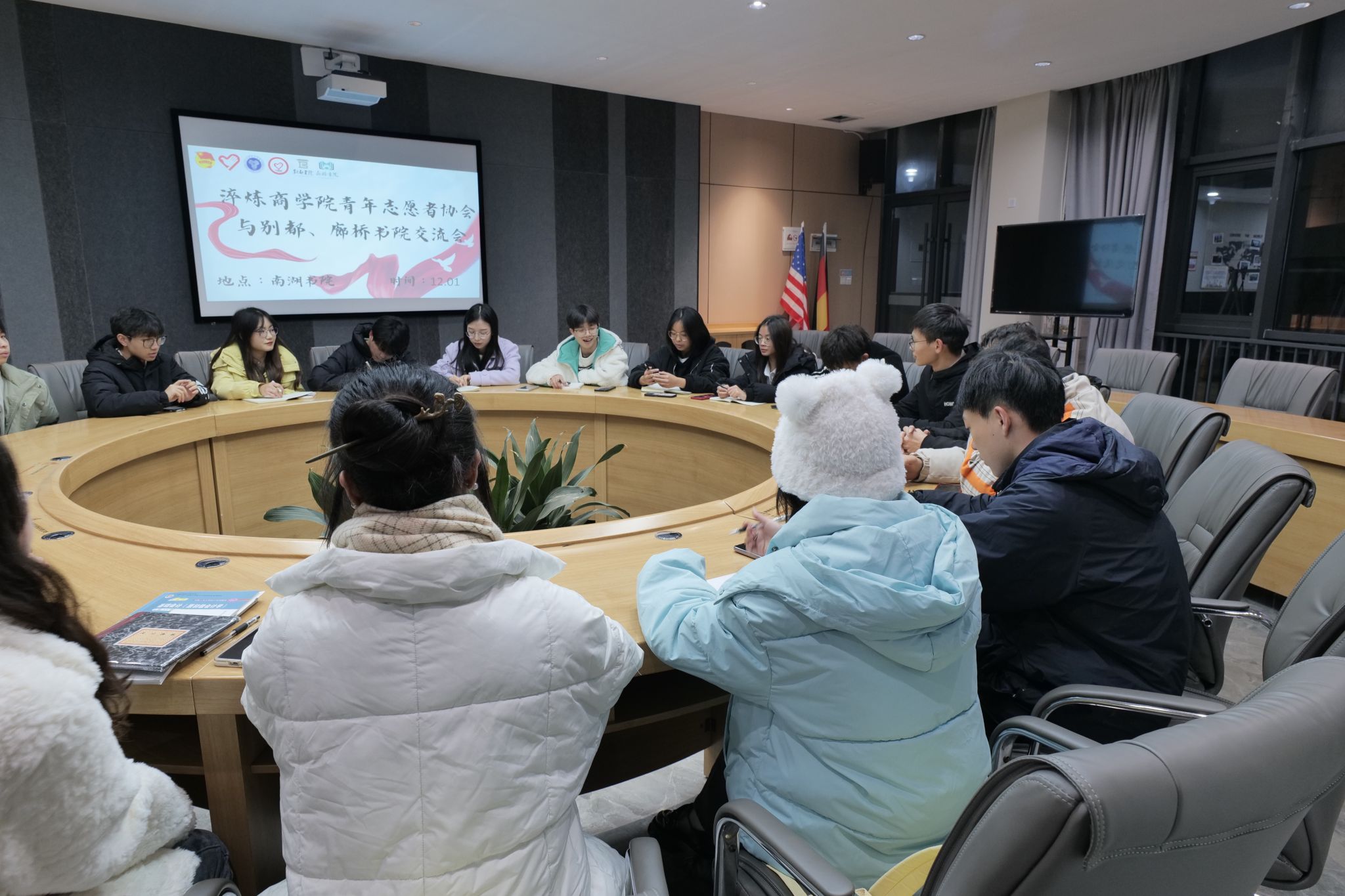 为促进两院发展,加强沟通合作,保障志愿服务活动高质量高水平发展,淬炼商学院青年志愿者协会于2023年12月7日在南湖书院圆桌会议室与别都书院开展了交流会。出席本次交流会的有淬炼商学院青年志愿者协会主席、各干部干事及别都书院主席、各干部干事。