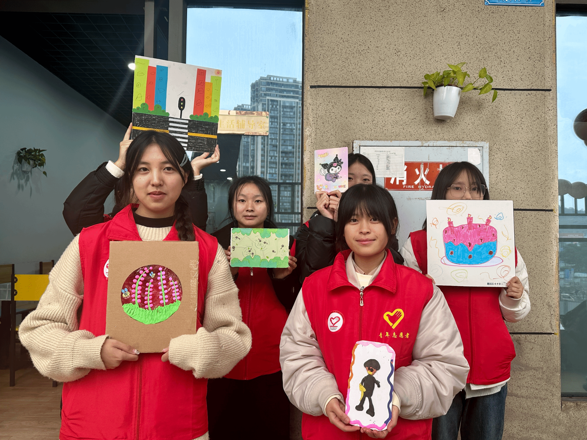 凝聚每一份爱,点亮每一颗心。这群特殊的孩子应该站在阳光下,无忧无虑的去书写专属的人生故事。在这一段旅途中,志愿者将紧握孩子们的双手,用初心换真情,让志愿红照亮孩子们的幸福未来。活动接近末尾时,志愿者们收到了小朋友们的可爱作品,一幅幅充满童趣又色彩丰富的画作。正如他们的内心,柔软又有力量。