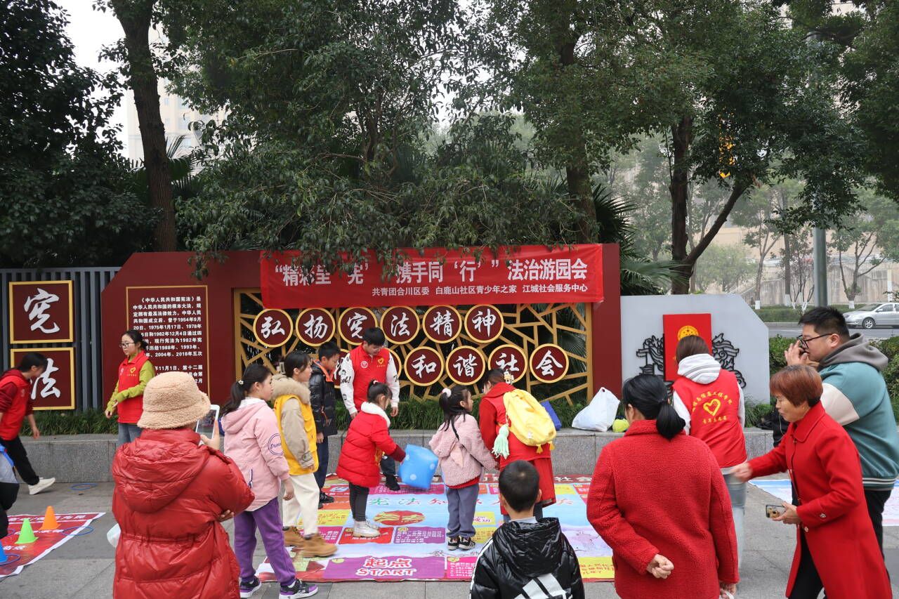 为深入学习贯彻党的二十大精神,强化宪法学习宣传,弘扬宪法精神,以法治保障群众权益,引导群众自觉学习宪法、遵守宪法、维护宪法。2023年12月9日淬炼商学院青年志愿者协会在重庆市合川区人民检察院的协助下,联合通信与信息工程学院青年志愿者协会前往各社区基地开展“尊法守法,携手筑梦”——普法进社区主题活动。参与本次活动的志愿服务专项支队有淬炼商学院青年志愿者协会“花儿系百老,小小志愿情”爱老敬老志愿服务专项支队、“零距离”普法志愿服务专项支队、爱暖童心小课堂志愿专项支队、通信与信息工程学院“党青之光”理论宣讲志愿服务专项支队、“太阳花亲情驿站”、关爱双职工子女志愿服务专项支队、“白鹿课堂”支教社区留守儿童专项支队等7个志愿服务专项支队在学校大门口集合后前往各志愿服务实践基地开展活动。