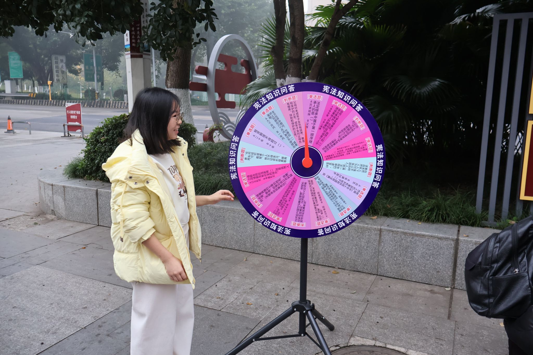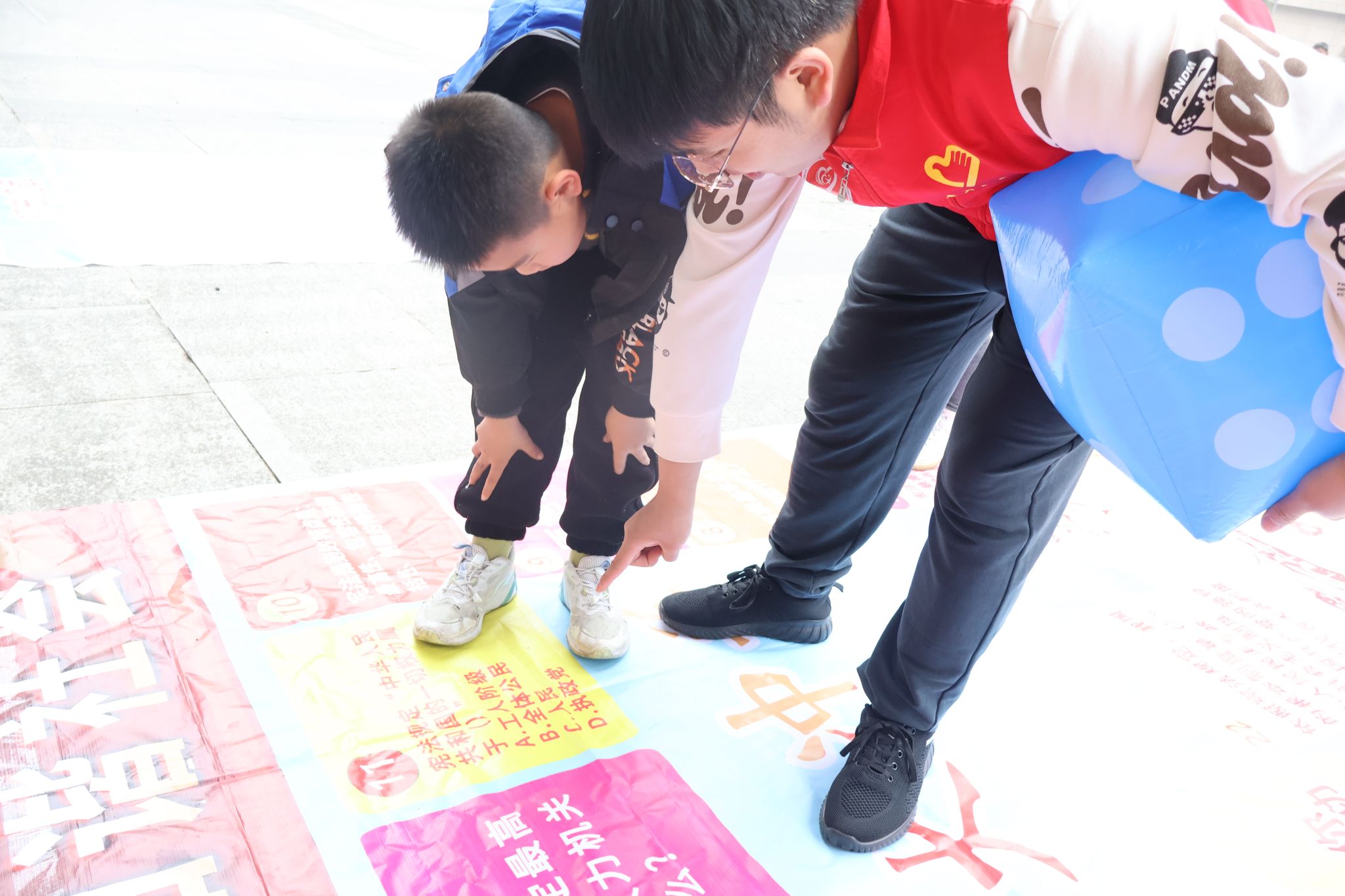 借助小游戏“宪法知识问答”,以转盘、自走棋和套圈的形式,让小朋友们在行为和思想上对法律知识有了更深入的理解。在活动过程中,志愿者们凭借自身对法律知识的理解,细心为小朋友们讲解其中的知识点,并和小朋友们一起积极参与其中。