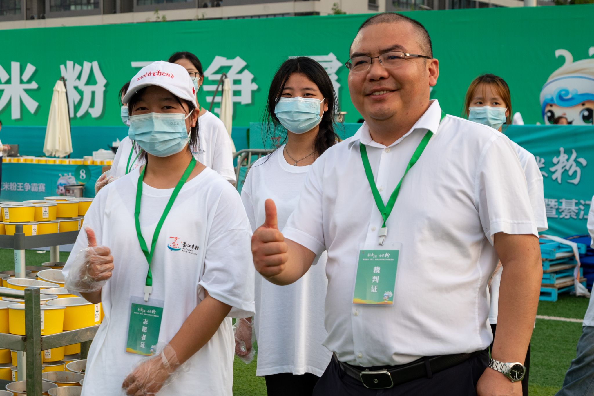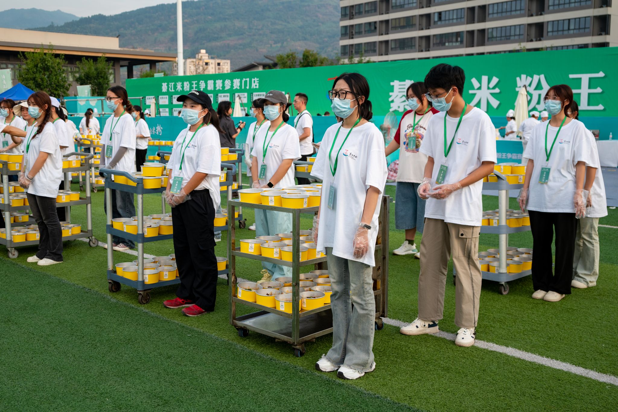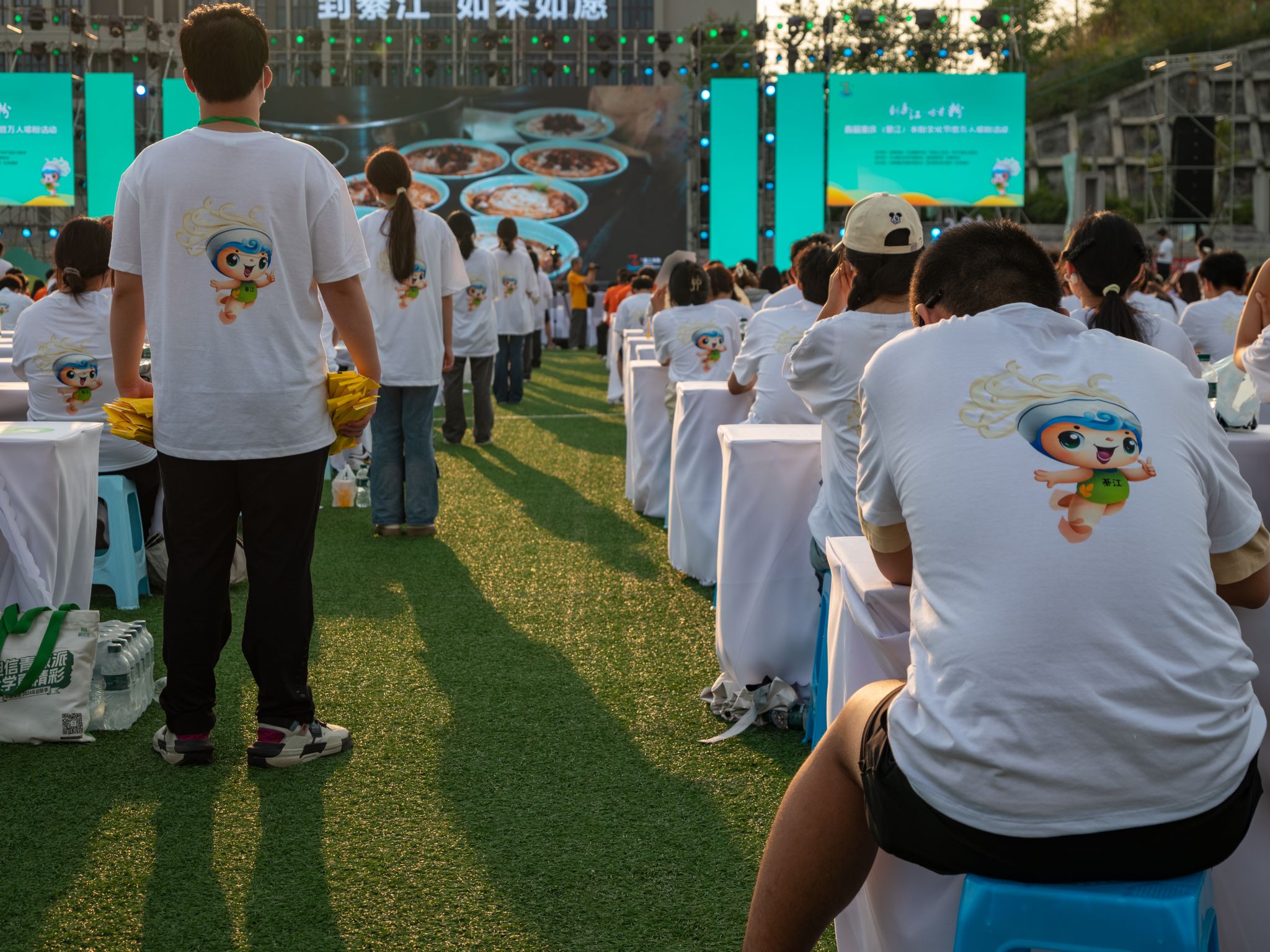 观看完米粉宣传片与情景剧后,观众对綦江特色米粉文化有了更加深刻的认识和了解,随着彩炮升空绽放,本次活动由此拉开序幕。现场万人同步嗦粉,全体志愿者严阵以待,身着特色志愿服穿梭在会场各个角落,负责米粉发放、道路指引、秩序维护等工作。他们怀揣盛情,为整场活动留下了许多暖心瞬间:积极主动向市民游客提供热情服务、耐心解答疑问、细心引导方向,同时协助工作人员处理现场紧急情况。
