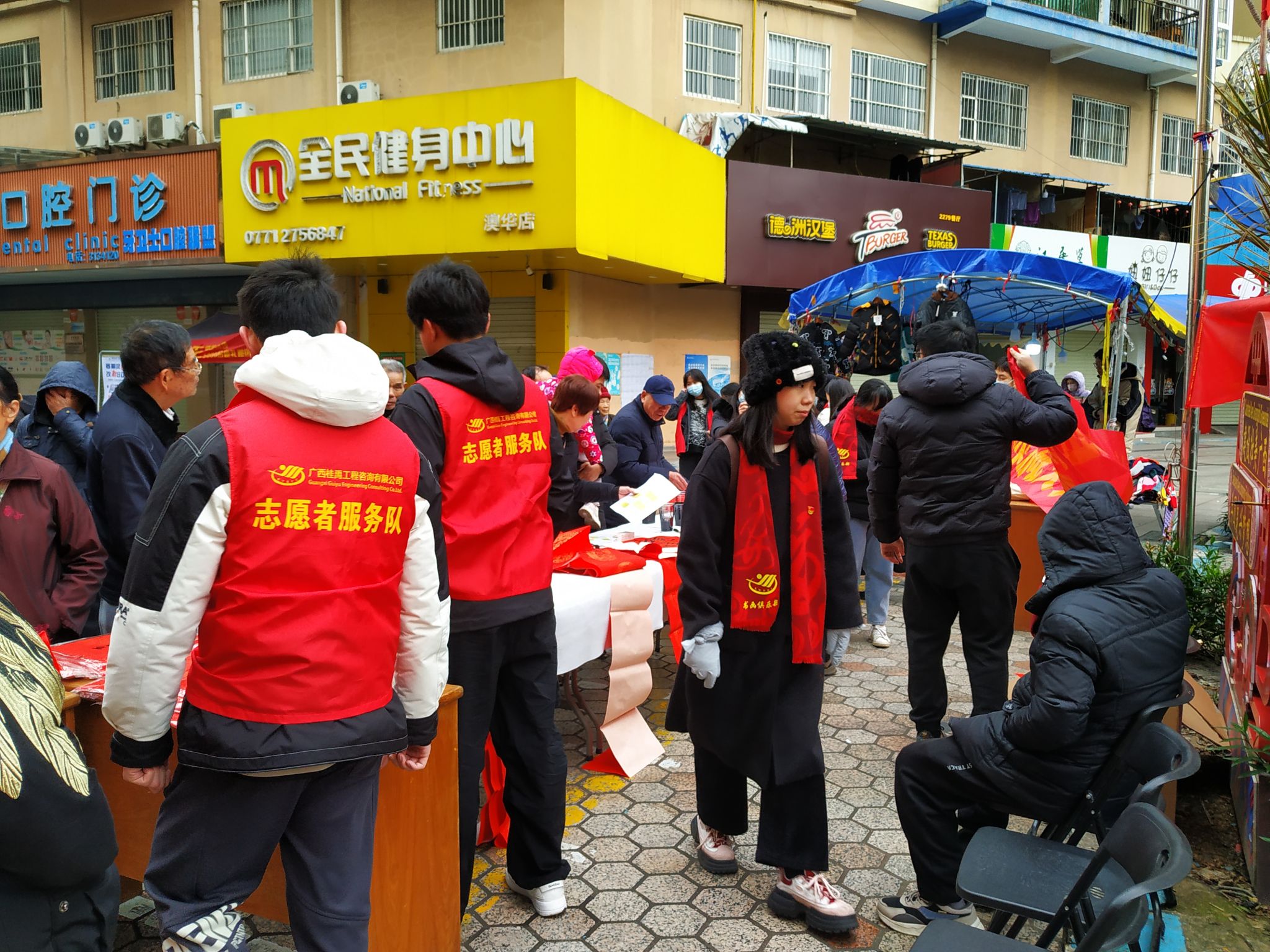 春华秋实,岁序更新,为弘扬中华优秀传统文化,丰富社区居民的精神文化生活,与社区老人温暖共迎新年到来。2024年1月23日,通信与信息工程学院周振鹏同学跟随广西壮族自治区南宁市兴宁区兴东街道澳华社区居委会的社区工作者们来到社区的澳华花园,共庆“金龙迎春”公益活动,共享免费赠春联之喜悦。
