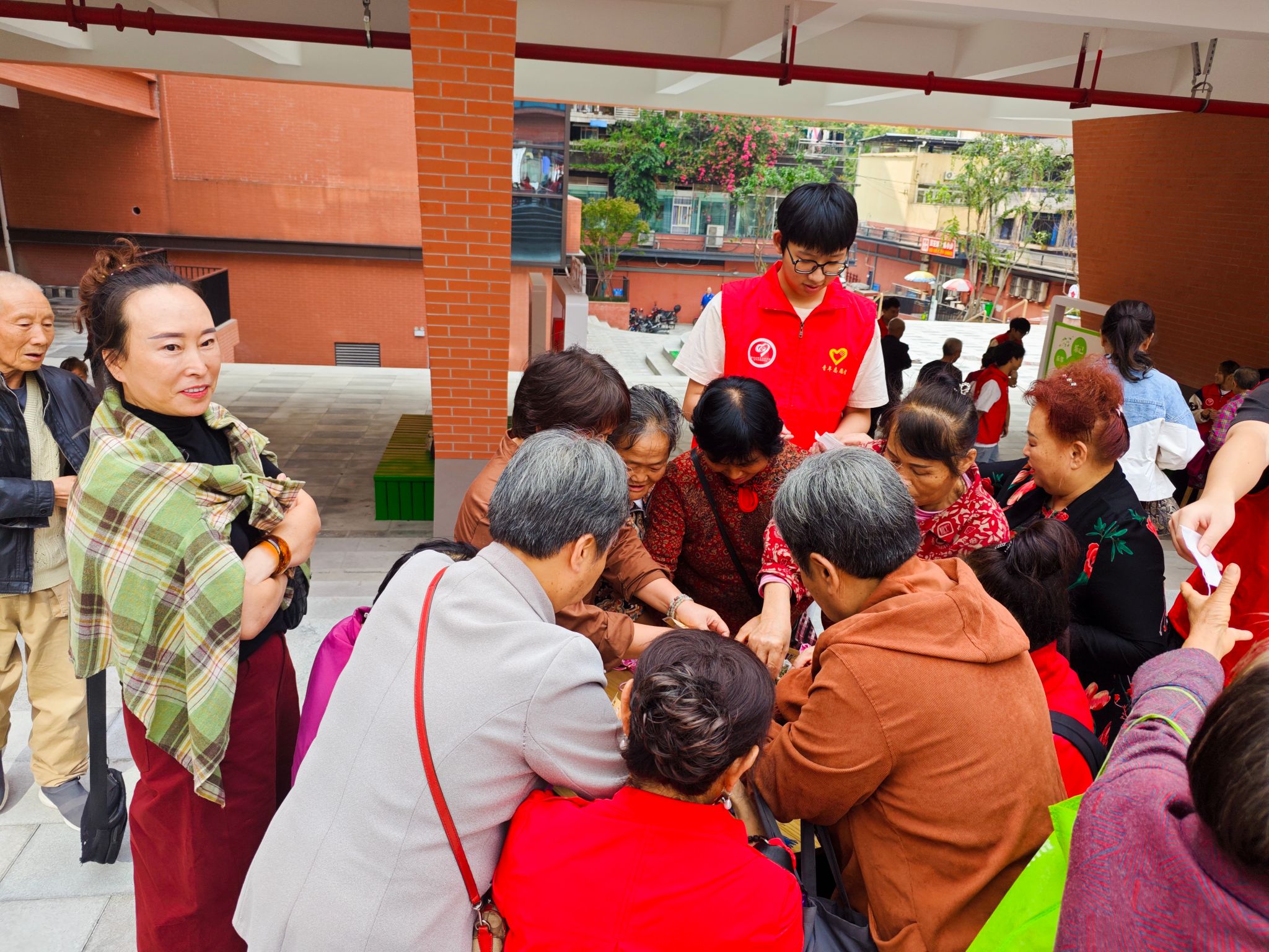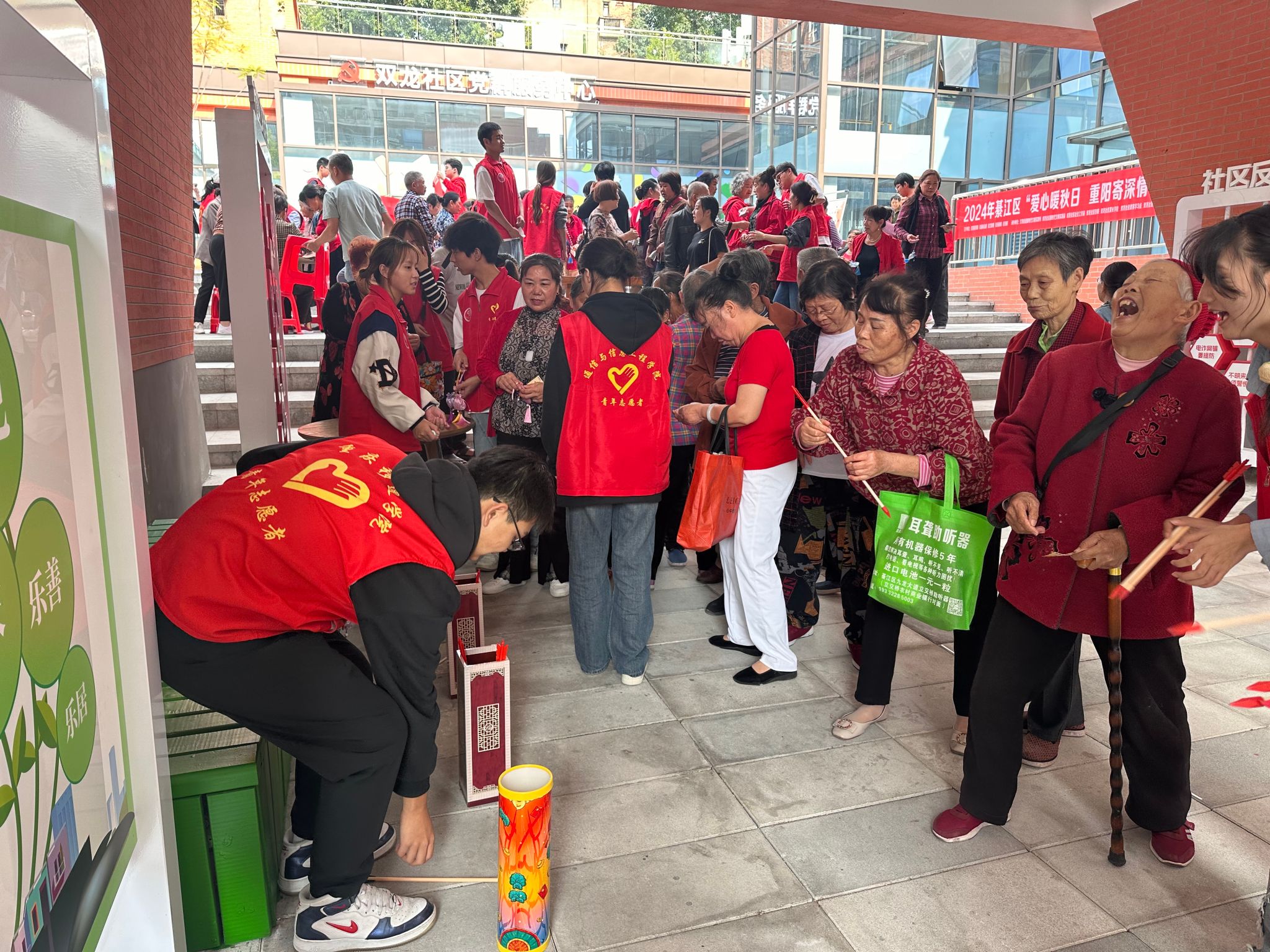 紧接着,在社区服务中心前坝子,更多精彩活动纷至沓来:制作香囊、投壶、义剪。老人们手持集章卡,满怀期待地投入到各项活动中。