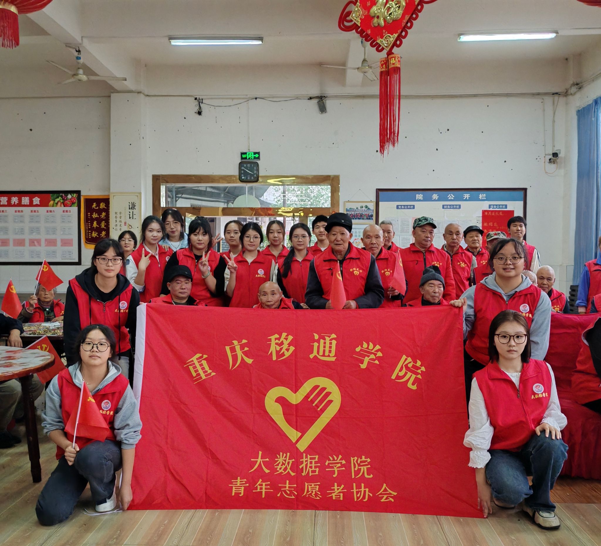 为了大力弘扬中华民族的敬老爱老传统美德,进一步激发全社会对老年人群体的深切关怀与广泛关注,增强和谐、温馨、充满爱的社会氛围。2024年10月11日,大数据学院青年志愿者协会在重庆綦江区三江养老院举办了一场“九九重阳节,温暖老人心”公益活动,并取得了圆满成功。