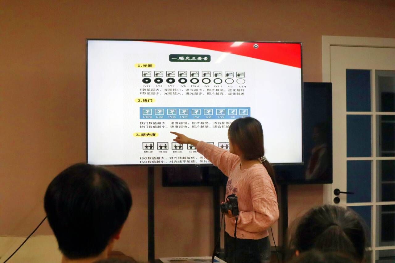随后,进行培训活动的第二篇章——相机使用培训。丁艺芯部长,作为主讲嘉宾,以深厚的相机操作经验和独到的见解,为志愿者们开启了一场视觉与技术的盛宴。她从相机的基础知识讲解,拍摄技巧的巧妙运用,后期处理的细腻雕琢,参数调整的精准把控这四个方面进行讲解。这些宝贵经验和技能,为他们在未来志愿服务中的摄影记录打下了坚实基础。