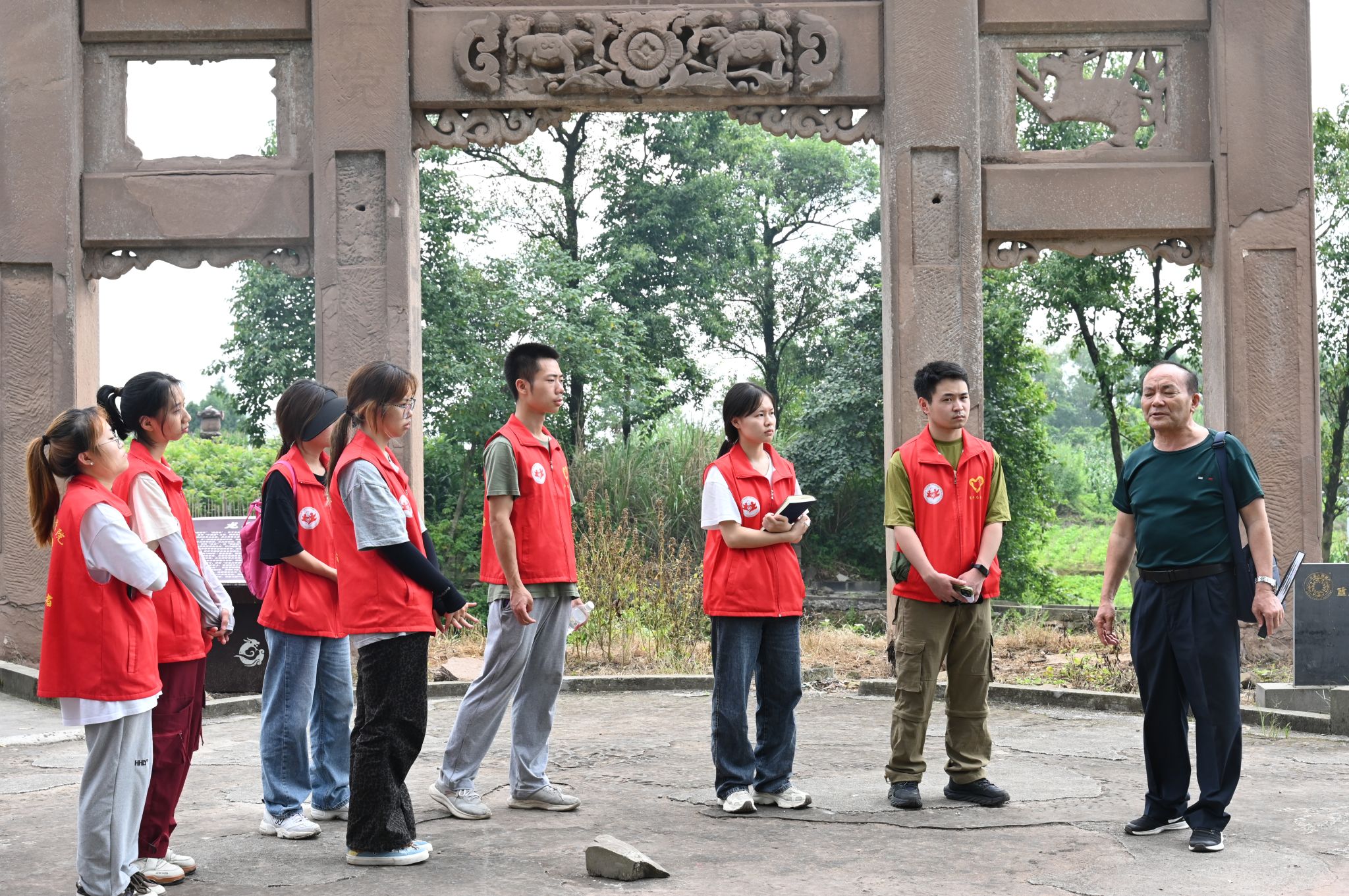 文化是旅游的灵魂,旅游是文化的载体,今日之旅游不再是走马观花,而是赏山赏水品文化。7月3日,为更好的让龙游寺走出金沙村,走出合川,持续成为合川文旅“金名片”。“聚力青春·献礼乡村”农乡社会实践队全体队员踏上前往舍身崖的征途,晨曦初上的舍身崖,金色的阳光洒落下来,将这片古老的土地照耀得熠熠生辉。迎着晨光,带着满腔热情跟随党员干部孙邦富了解龙游寺的历史文化和人文情怀。在采访中孙爷爷向我们讲述到,龙游寺的地理位置、历史人文环境、传闻轶事、未来规划、以及龙游寺对金沙村的发展重要意义。承载近千年历史的龙游寺是金沙村的文化资源宝藏,更是合川区历史文化遗产的沧海遗珠。
