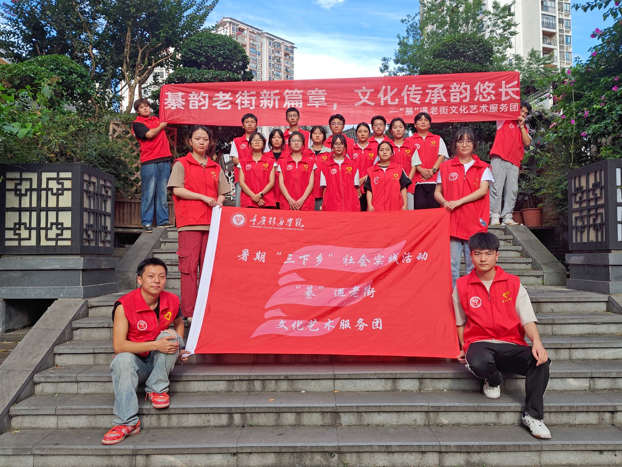 非物质文化遗产是中华优秀传统文化的重要载体,是全社会的财富,也是世界文化多样性的有机组成部分。2024年7月4日,由2名指导老师及20名学生志愿者组成以非遗文化为主题的“綦”遇老街文化艺术服务团队一同乘车前往万盛经开区万盛街道开启为期七天的非遗文化传承之旅。
