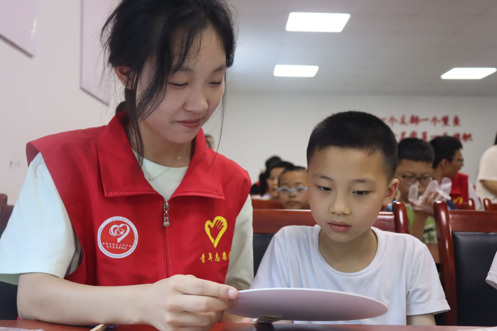 小朋友们来到活动现场后,志愿者们热心前去迎接小朋友们,并积极了解小朋友们的基本情况,而后志愿者们便向小朋友们详细介绍青少年之家开展非遗文化学习课堂的重要性。而后志愿团队成员们大手牵小手,分组带领小朋友们准备进行“漆扇”的制作,满怀兴奋地投入到这场非遗文化的实践中。