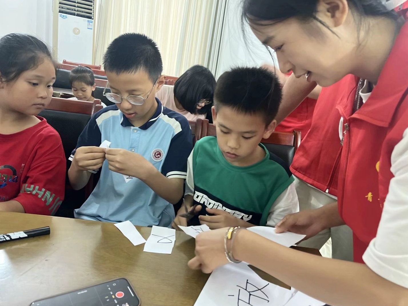 2024年7月5日,“墨韵承情”服务团分为两批分别在隆盛社区与振兴村启动汉字探源之旅。与青少年共聚一堂,以字会友,共赏汉字之美,共筑友谊之桥。
