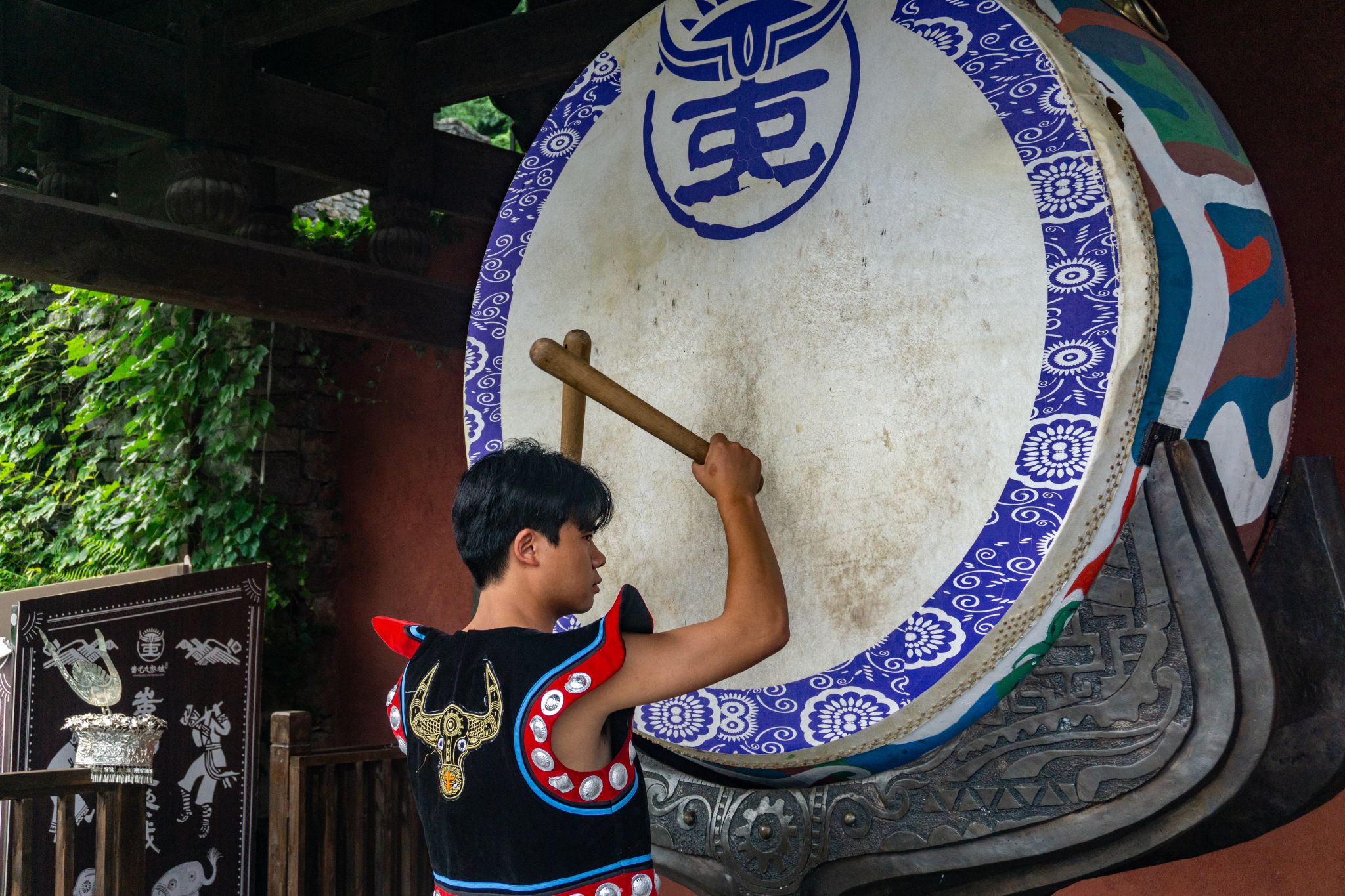 踏入苗戏楼,一阵喜庆氛围迎面而来,传统的苗歌、抛绣球、迎亲、哭嫁以及苗鼓笙歌,每一个环节都充满了喜庆和祥和。团队成员化身新郎官,亲身体验这场传统苗族文化。苗鼓咚咚,敲响欢乐节拍;笙歌悠扬,唱响动人旋律;两者交织成一幅幅喜庆祥和画卷。如同清泉般洗涤都市的喧嚣,深深烙印在团队成员的心田。