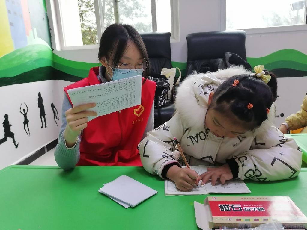 在正式开始后,我校志愿者在经过合理的时间规划,将天桥社区的小朋友们集中在一起,组织她们有序坐好,督促他们在一定的时间内保质保量地完成作业,并对她们进行一对一专项辅导。不仅为小朋友们答疑解惑,而且还让他们尝试举一反三,从而让小朋友们在被辅导过程中更加透彻地理解知识,在举一反三的过程中学会主动思考,在思考中得到更深层的学习,找到学习的乐趣所在,进而有所提升。
