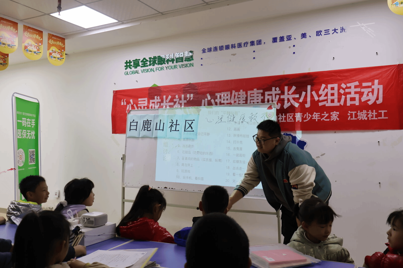 近年来,我国工业化、城镇化的快速发展,导致一个特殊的少年儿童群体——“留守儿童”问题的日益凸显。为唤起全社会对留守儿童这一特殊群体的关注,让留守儿童能够感受到来自社会的关爱,体现和谐社会大家庭的温暖,重庆移动学院通信与信息工程学院青年志愿者协会“白鹿课堂”支教社区留守儿童志愿服务专项支队于2023年12月2日前往合川区白鹿社区青少年之家活动室,开展“关爱心灵健康·守护快乐成长”主题教育。