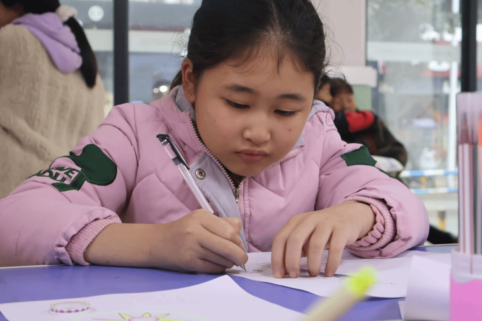 接下来,志愿者们将涂色模板纸逐一分发给在座的小朋友们,随后前往到一个安静的环境中,开始进行呼吸练习。由志愿者引导小朋友们进入冥想状态,在冥想的过程中,小朋友们被鼓励自由联想,畅游在无边的想象空间中。通过特定的呼吸法,小朋友们逐渐感受到一个松弛而专注的状态。