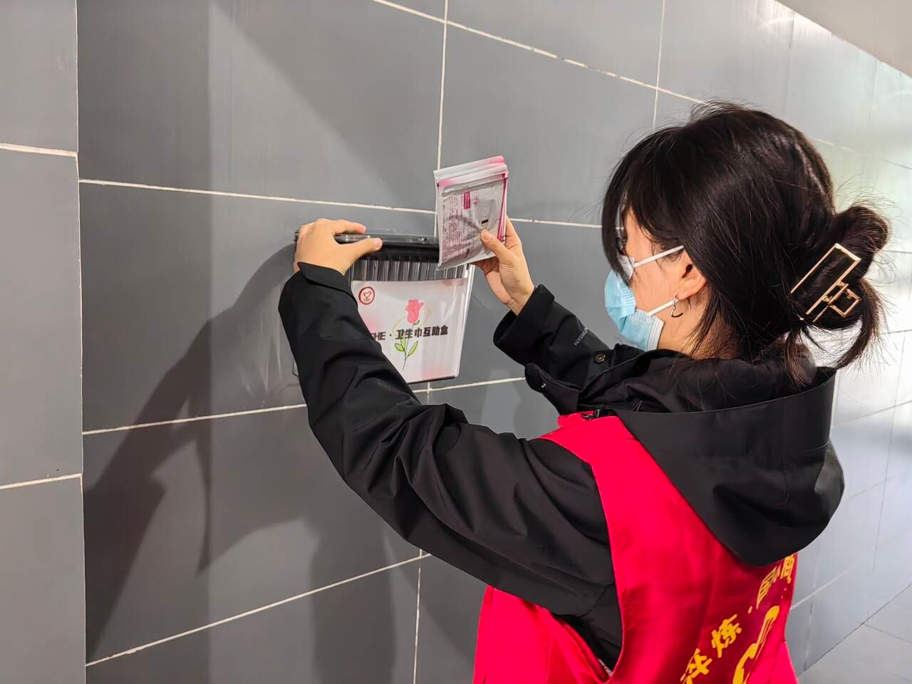 月经是女性再正常不过的生理现象,女生正常的生理需求也不应该遮遮掩掩。为让更多的女孩子不再因月经困境而自卑,不再因在女性身份而自缚,也不再因旁人眼光而自弃,在心理层面彻底打破月经困境。重庆移通学院淬炼商学院青年志愿者协会“SHE”关爱女性志愿服务专项支队于12月6日在南校区开展了卫生巾补充活动。