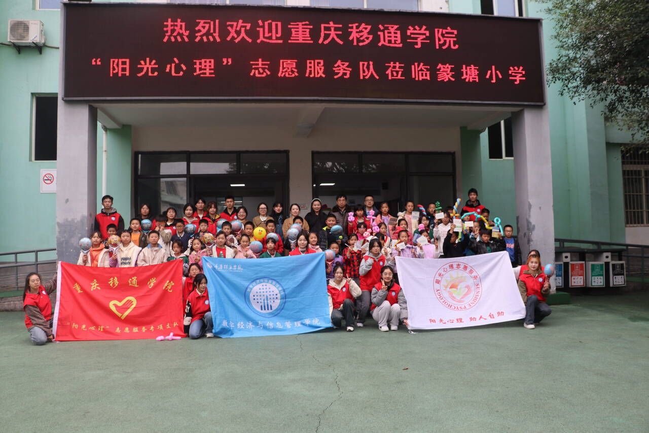 为了加强心理健康宣传教育,让心理服务走入学校、村镇,宣传“阳光心理,助人自助”的宗旨,重庆移通学院“阳光心理”志愿服务专项支队于12月8日下午14:00在重庆市綦江区篆塘镇人民政府开展授牌活动。参与本次授牌的有篆塘镇党委委员李岱芸,篆塘镇政府代表敖俊主任,篆塘小学校长张伟、郑桂林,重庆移通学院数字经济与信息管理学院团总支书记潘锐老师,数信学院志愿服务板块指导老师张静老师,就业创业板块指导老师陈燕华老师,心理健康教育与咨询中心侯茜老师和“阳光心理”志愿服务专项支队成员。