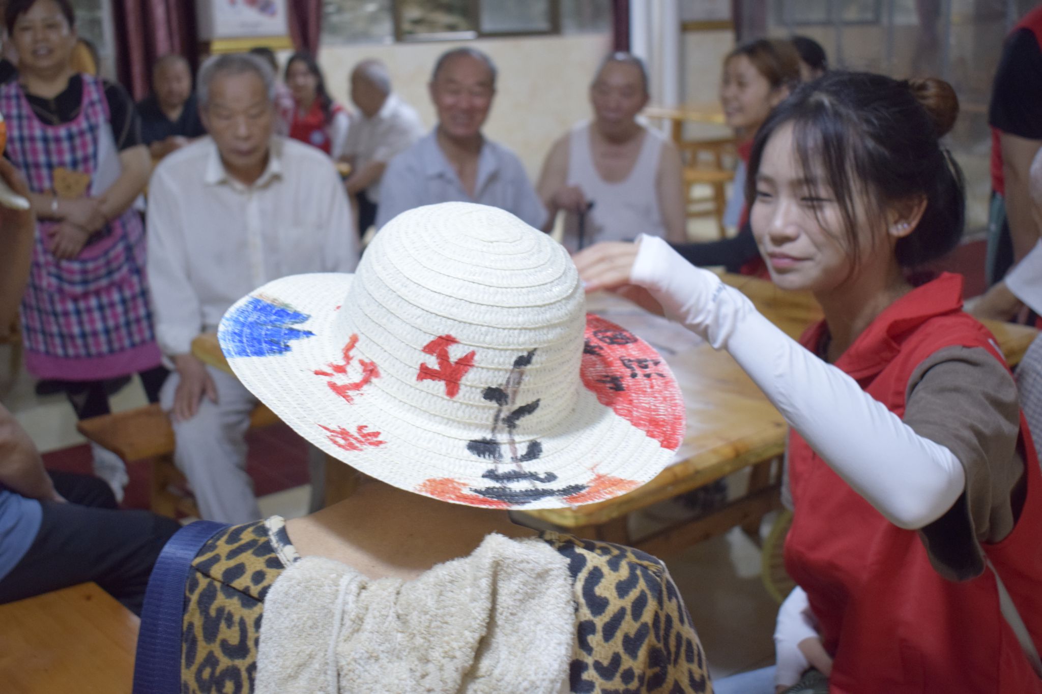 在休养院的一间温馨房间里,遇到了几位令人肃然起敬的老兵,他们有着饱经风霜的脸庞,每一道皱纹都反复诉说着过往的峥嵘岁月。老兵们见到我们的到来,显得格外高兴,他们激动地回忆起那段战火纷飞的岁月,讲述着战场上的生死瞬间和战友之间的深厚情谊。其中一位老兵感慨道:今天的幸福生活来之不易,是无数战友用鲜血和生命换来的,我们要倍加珍惜。“红岩红梅花要开,红梅花开呈异彩。崇高信仰铭心上,前赴后继无人挡。”在场的每一位志愿者都被他们讲述的故事深深打动,对他们为国家和人民做出的牺牲和贡献充满了敬意。与此同时,各位志愿者们手捧着为各位前辈精心准备的慰问礼品,以及由我们的“小红砖”党史学习教育团队亲手绘制的红岩帽子赠予老兵们,希望能通过这些来表达我们的一份心意,这些不仅承载着团队对老兵们的深深敬意,更寓意着红色精神的传承与发扬。