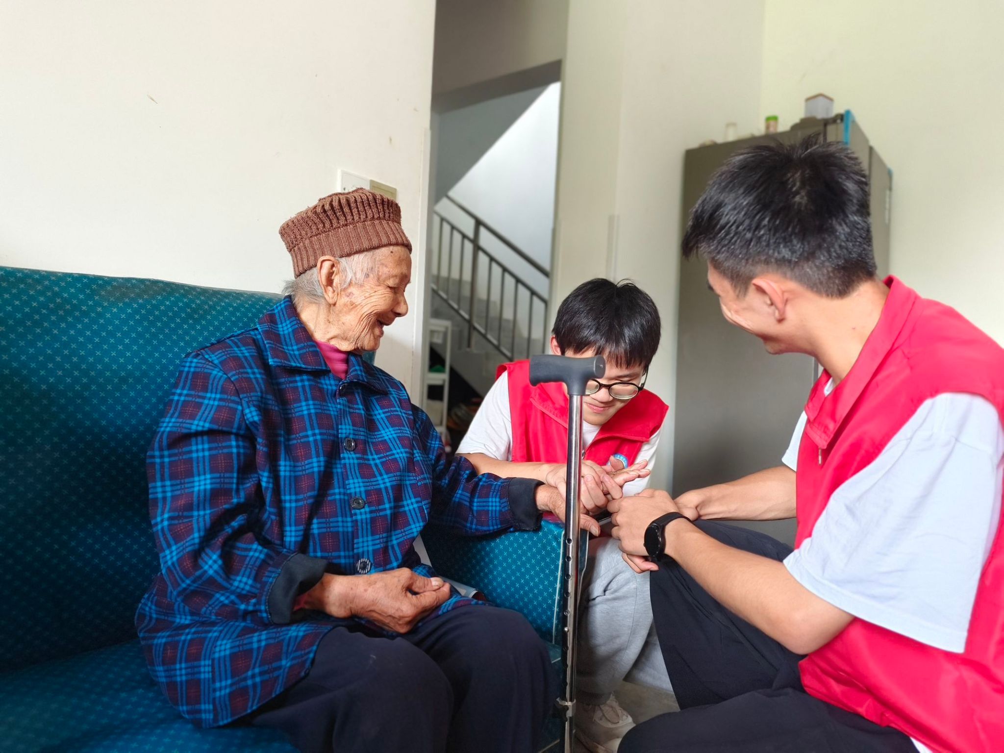在浓厚的爱国情怀驱使下,午后时分,新寨“萤火虫”国情观察团的成员们满怀敬意地组织前往拜访了村中两位德高望重的百岁老人。看到我们的到来,两位老奶奶满面笑容,显得非常高兴。同学们围着老人,亲切地与她们交谈,细心了解她们的生活状况和身体健康,并向她们送上了最诚挚的祝福。在交谈中,她们大方地分享了自己的长寿之道与生活智慧,令在场的每一位同学都深感启迪。老奶奶们表示,保持积极的心态、形成规律的作息和进行适量的运动,是她们长寿的秘诀。此行不仅让同学们感受到了长寿的智慧,更激发了他们对老年人的关爱之心。我们希望通过这样的活动,能够唤起更多人对老年群体的关注和照顾,为社会注入更多的温暖与关怀。