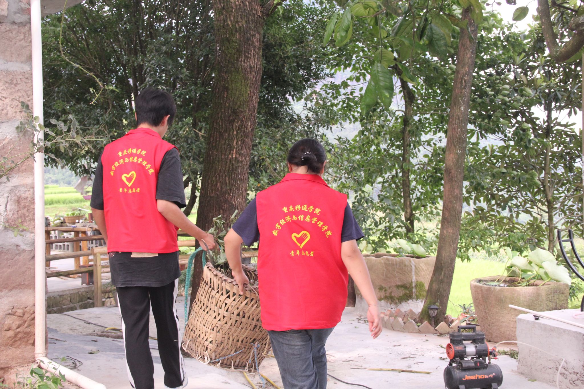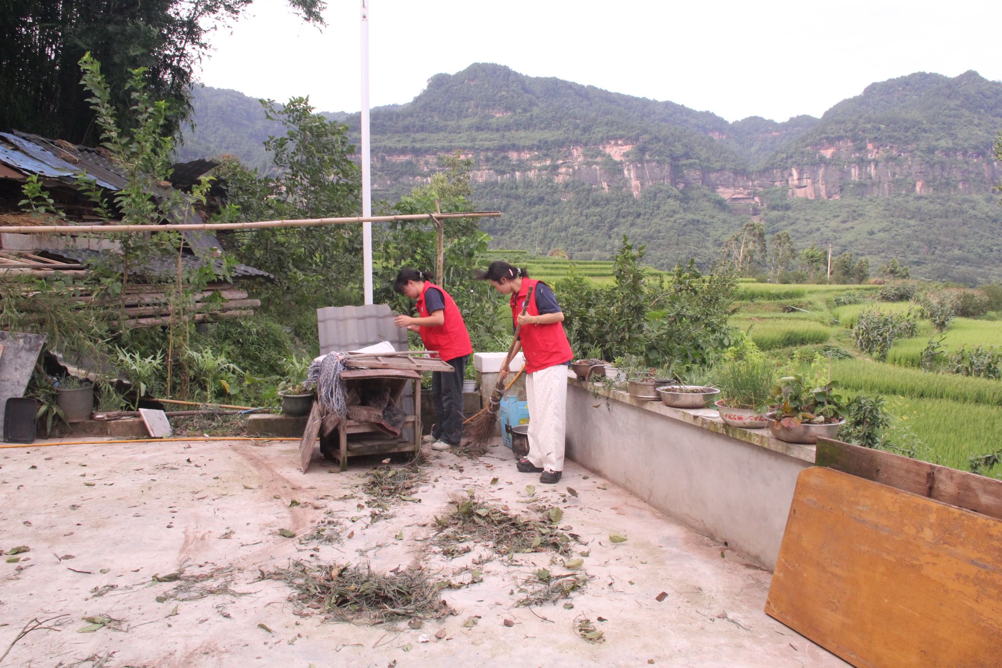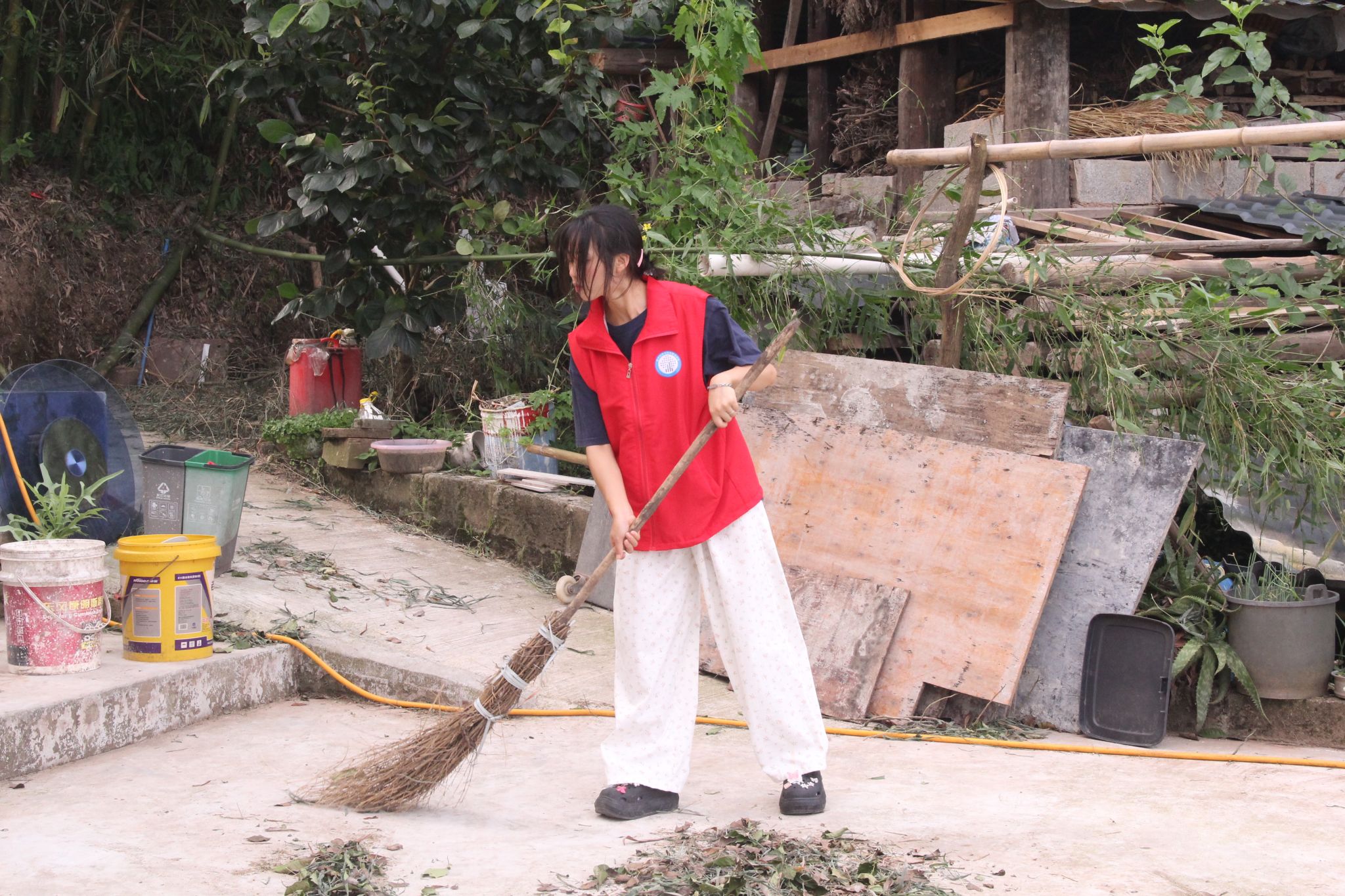在红岩村张书记的热情邀请下,志愿者们首先投身于一场细致入微的清洁行动。他们细心地扫除小屋周围的落叶与枯枝,拔除盆栽中的杂草,精心修剪古树的枝丫,让小屋在晨光中渐渐褪去岁月的尘埃,焕发出新的生机与活力。小屋的古朴与静谧,在这一刻更加鲜明地展现在众人眼前,仿佛时间在这里凝固,只留下宁静与和谐。