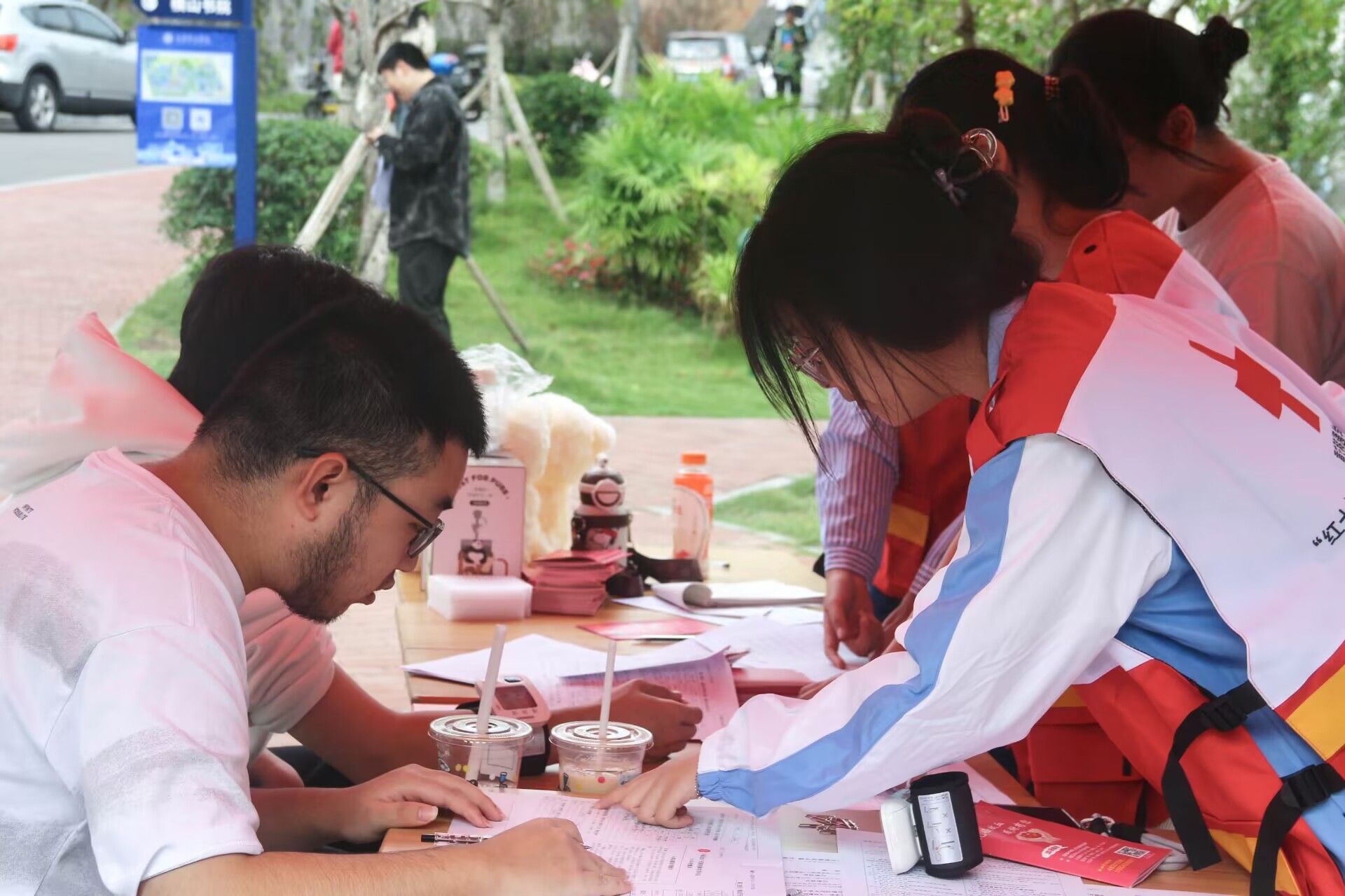 每一滴热血,都是生命的礼赞,更是青春力量的温暖传递。为弘扬社会正能量,激发大学生的社会责任感,我校红十字应急救援志愿服务专项支队携手綦江区中心血库在2024年10月24日至25日于瀛溪篮球场旁共同举办了一场主题为‘让我们一起掀起献血热潮’的献血活动。据统计,此次献血人数约百人,献血总量25500毫升。此外,还有68位同学勇敢地成为了造血干细胞捐献志愿者。这些献血者和志愿者,用自己的实际行动诠释了什么是真正的“奉献、友爱、互助、进步”的志愿精神,体现了“人道、博爱、奉献”的红十字精神在青年一代中的传承与发扬。