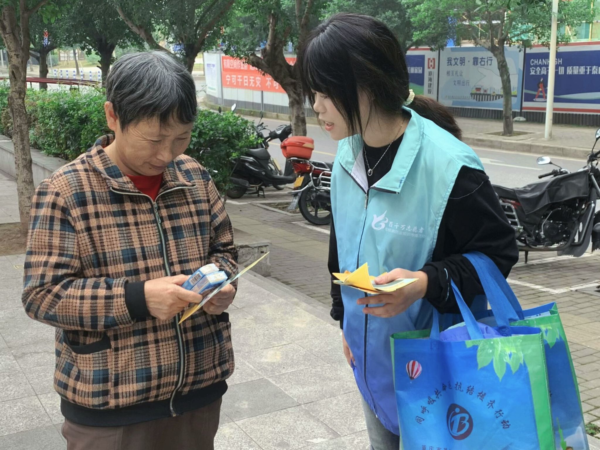 “爷爷,您以前听说过结核病吗?知道它是怎么预防的吗?”“您平时出门或者在家里,会特别注意保暖和增强身体抵抗力吗?”“阿姨,您家里有没有定期开窗通风的习惯呢?”一群满怀热忱的志愿者踏入小区踊跃投身行动,他们以生动的讲解,为居民编织起一道防痨知识的防护网。