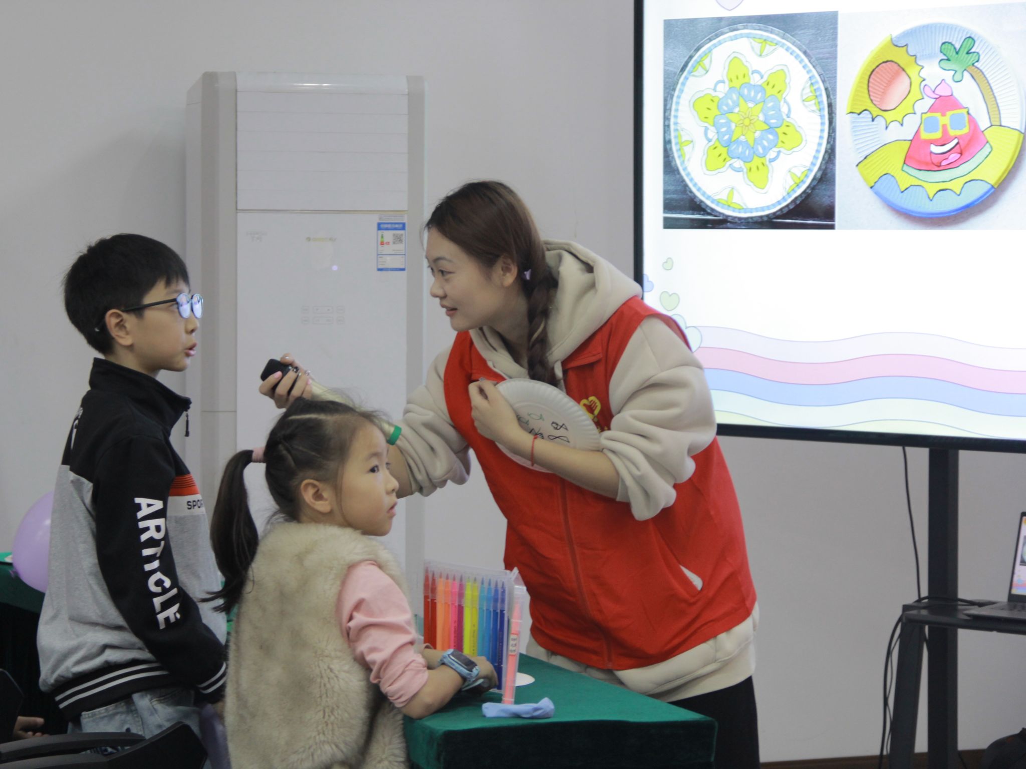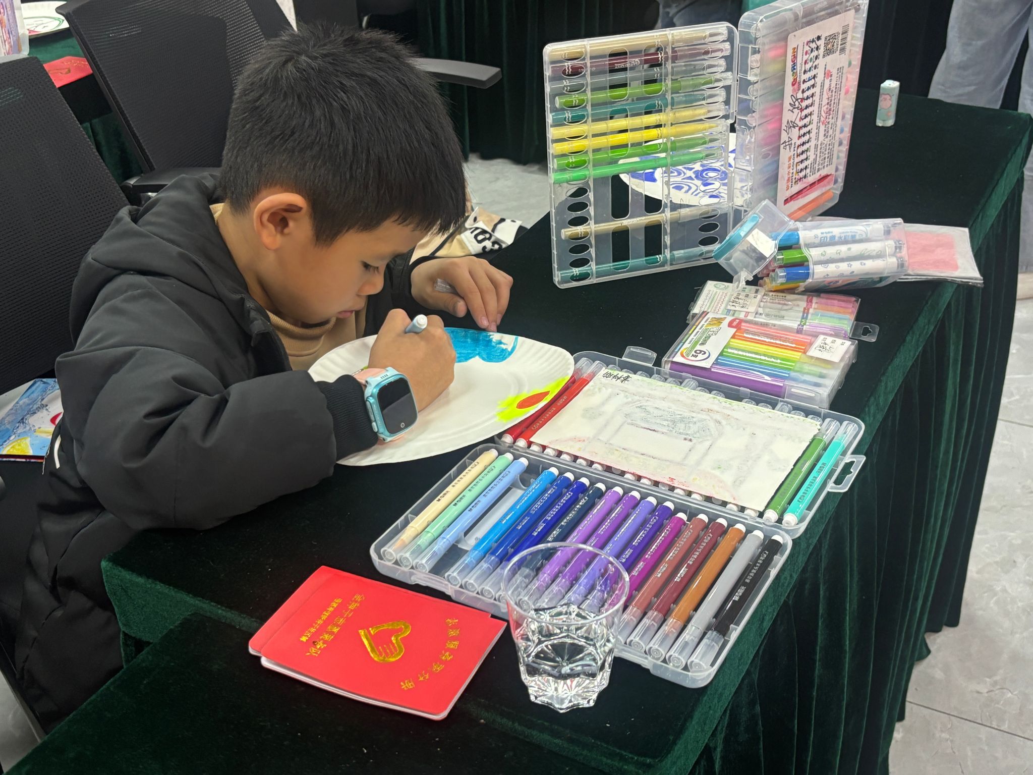 在此环节中,可爱的小朋友们在纸盘上描绘出心中美好的事物,展现其纯真的内心与想象力。他们勾勒的每一条线条,涂抹的每一块色彩,都将自己对生活的热爱和对未来的憧憬融入到作品中,在小朋友们的积极动手时,志愿者们也在孩子们身边细心地进行指导,解疑答难,激发他们的创造力和想象力,确保每个小朋友都能在活动中获得成长和快乐。