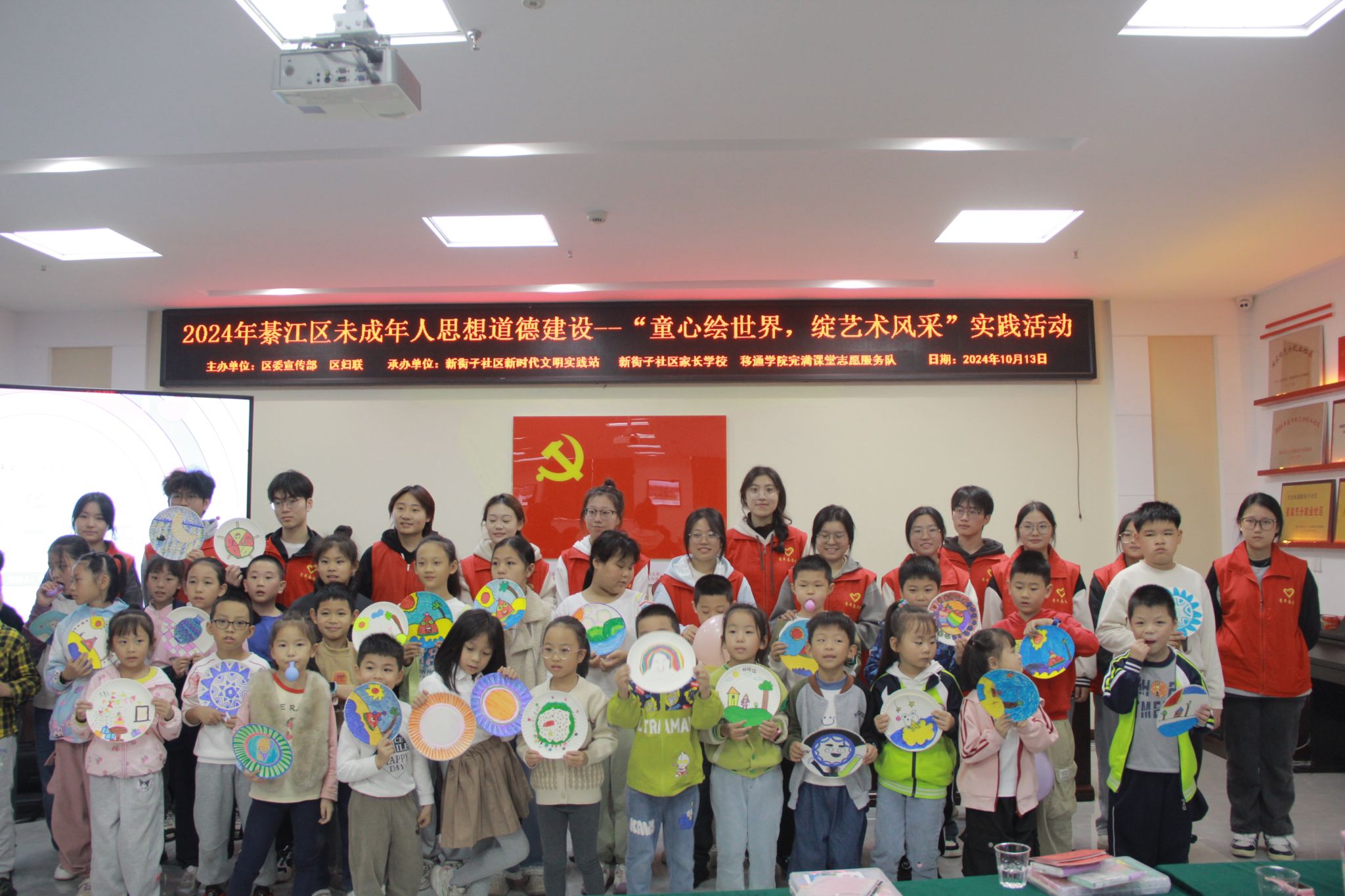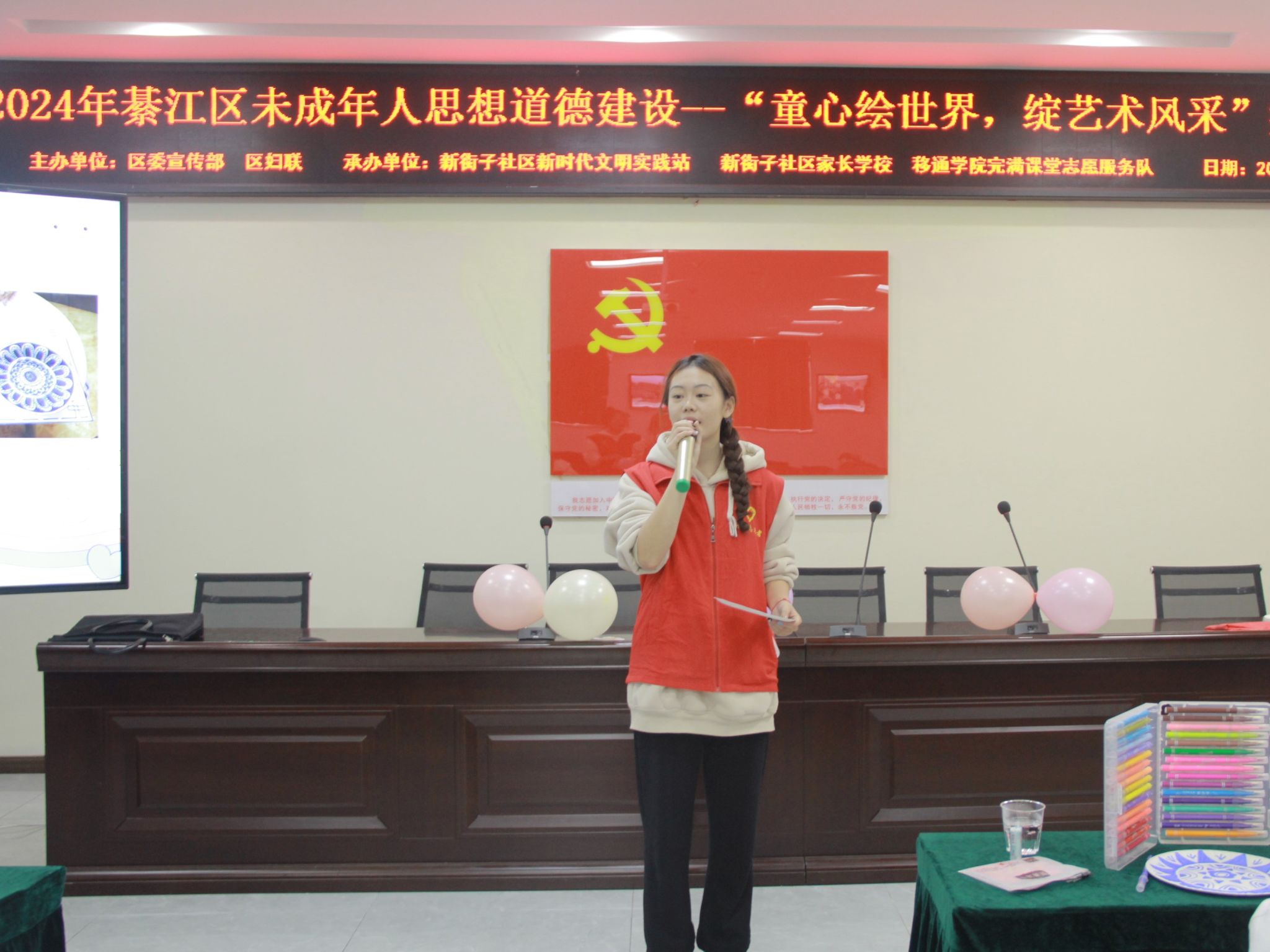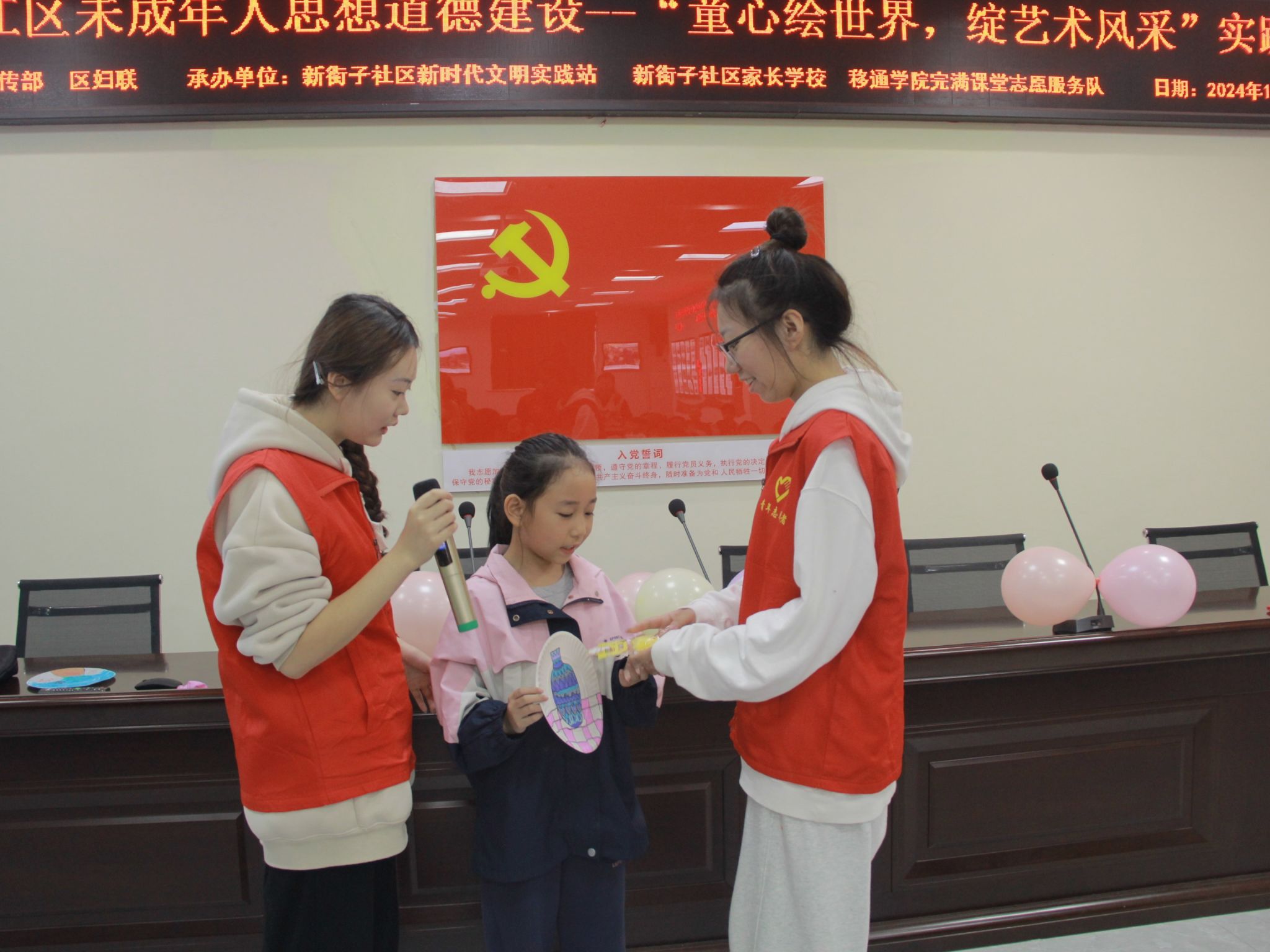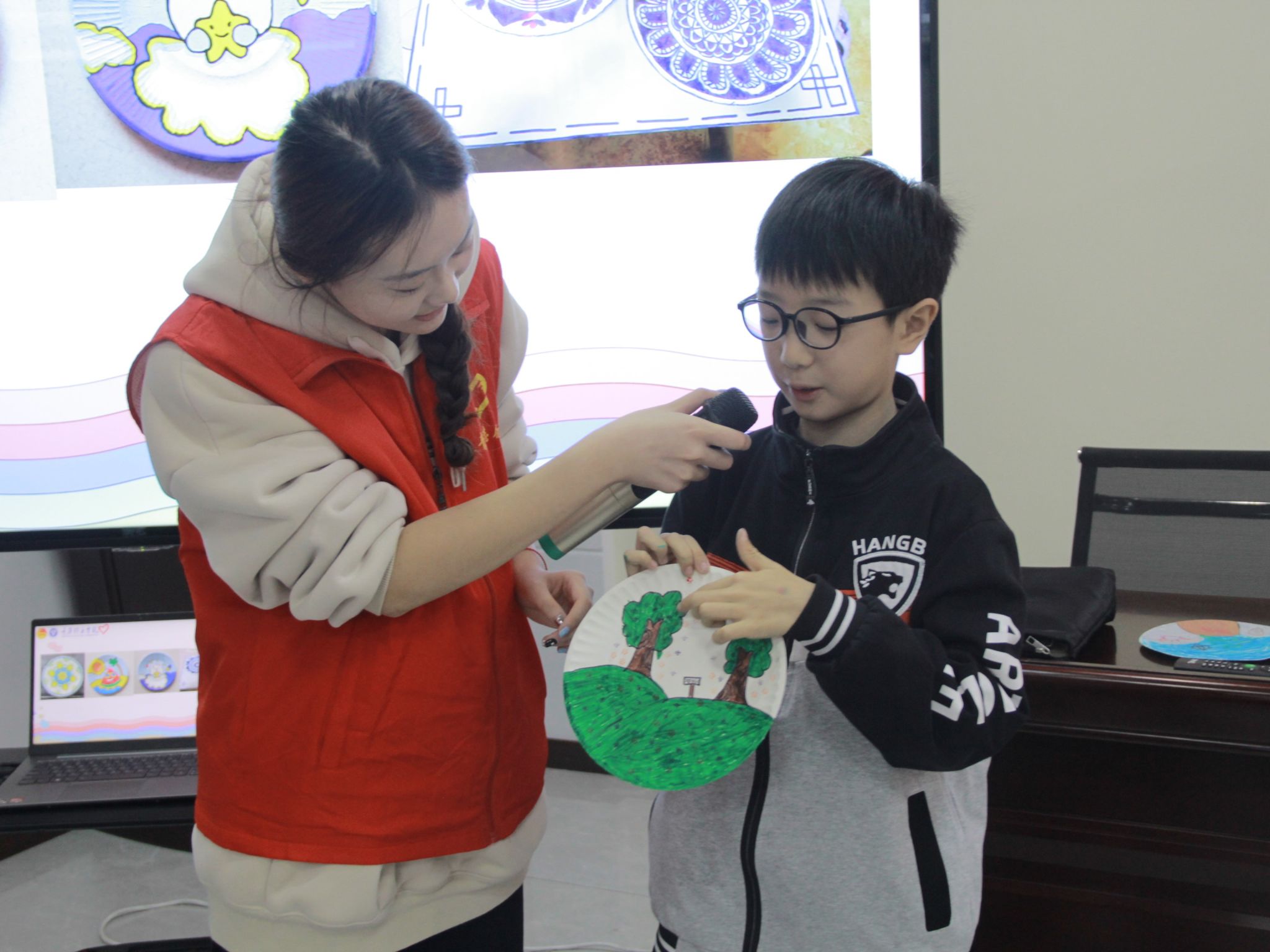 艺术课堂在青少年儿童的成长过程中扮演着重要角色,为了培养孩子们的艺术感知力、创造力和审美情趣,完满课堂志愿服务专项支队于2024年10月13日上午8:30在新街子社区开展了“童心绘世界,绽艺术风采”主题志愿服务活动。此活动旨在通过艺术课堂引导与艺术赏析的活动形式,利用圆形纸盘绘画、绘画展示等实践互动模式,让孩子们在艺术的海洋中自由探索,使其发现美、感受美、表达美,从而绽放出自己独特的艺术风采。