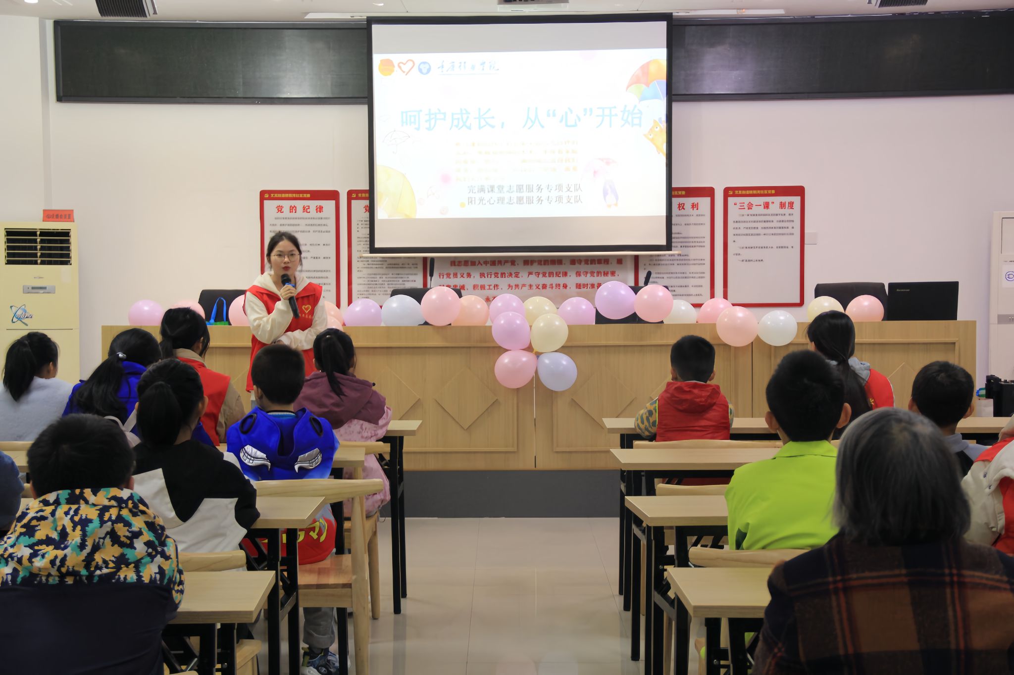 在当今快节奏、高压力的社会环境中,青少年儿童的心理健康问题日益受到社会各界的广泛关注。面对成长中的困惑与挑战,如何帮助孩子们建立积极的心态,学会自我调节,成为了家庭教育、学校教育乃至整个社会不可忽视的重要课题。在此背景下,完满课堂志愿服务专项支队和“阳光心理”志愿服务专项支队于2024年11月23日上午8:00在核桃湾社区成功举办了“打开心窗,快乐自在成长——青少年儿童心理健康教育主题志愿服务”活动,该活动旨在为青少年儿童提供一个心灵的港湾,通过专业的心理辅导和温馨的志愿服务,助力他们健康成长,快乐前行。
