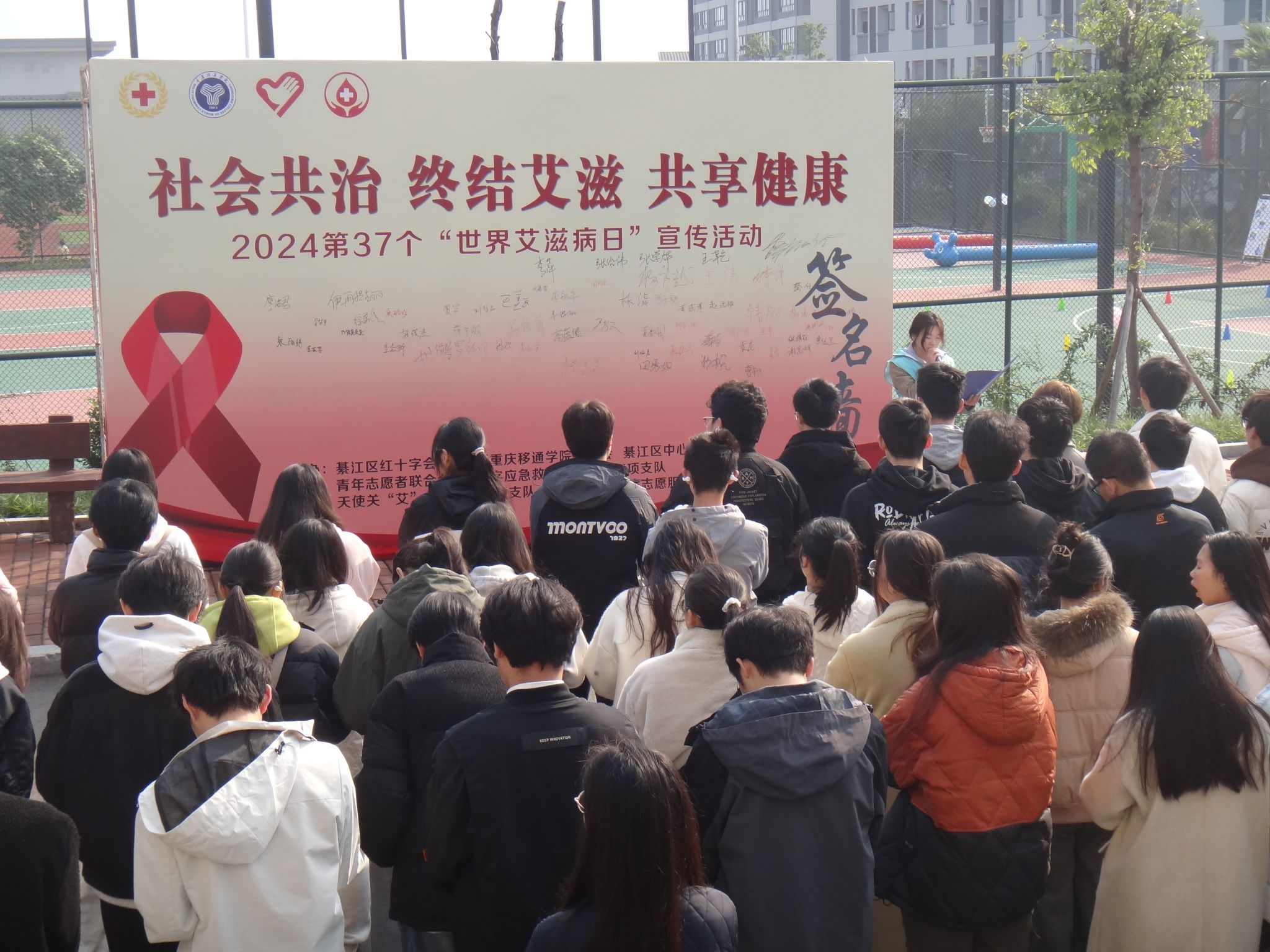 在当今全球公共卫生领域,艾滋病依然是一个亟待解决的重大问题。为深化学生对艾滋病防控知识的认知,激发他们的自我保护意识与预防能力,我校红十字应急救援志愿服务专项支队、天使关“艾”志愿服务专项支队、“传声筒”防痨志愿服务专项支队携手綦江区中心血库于2024年11月27日至30日在重庆移通学院綦江校区举办了“携手防艾,共享健康,为青春设防,向‘艾’说不”系列活动。活动期间,共有158名学生积极参与无偿献血,总献血量高达37600毫升,他们用温热的血脉,生动诠释了“奉献、友爱、互助、进步”的志愿精神真谛,同时也展现了“人道、博爱、奉献”的红十字精神在青年群体中的蓬勃生机与世代传承。