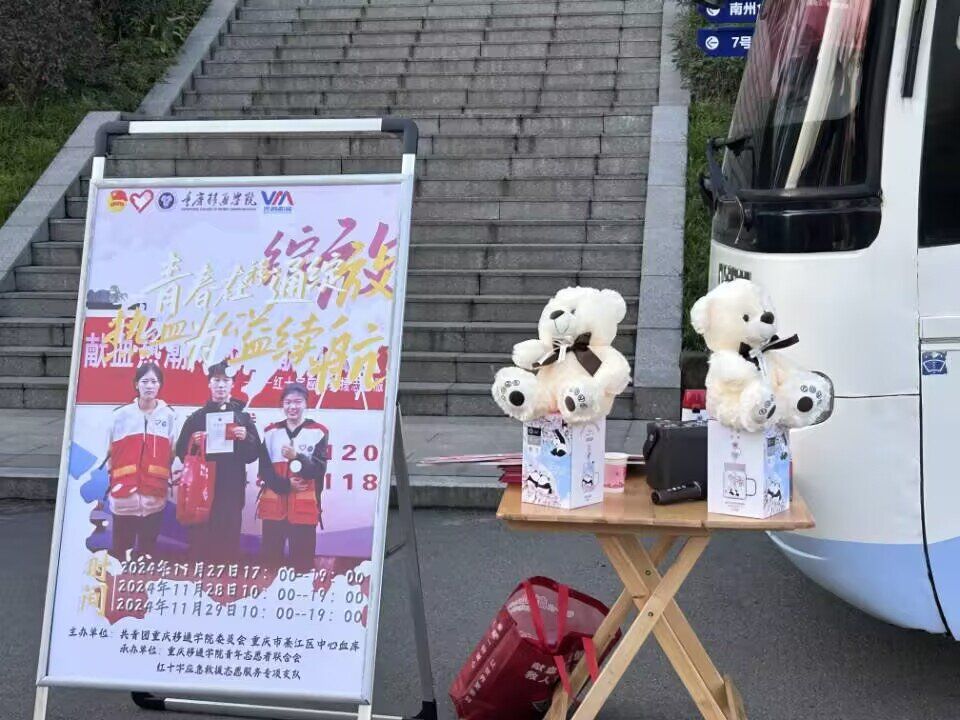 为大力弘扬人道主义的奉献精神,鼓励大学生积极投身社会公益活动,着力培养其社会责任感,并切实为医疗系统补充宝贵的血液资源,在 2024 年 11 月 27 日至 30 日期间,红十字应急救援志愿服务专项支队携手綦江区中心血库,于行者楼主干道成功举办了 “青春在移通绽放,热血为公益续航——暨红十字无偿献血公益活动”。据统计,本次活动共有158名学生参加献血,78人成为造血干细胞志愿者,累计献血量 37600毫升。此次活动不仅让大学校园洋溢着浓浓的爱心氛围,更为医疗救治工作储备了一份坚实的力量,最终圆满落下帷幕。