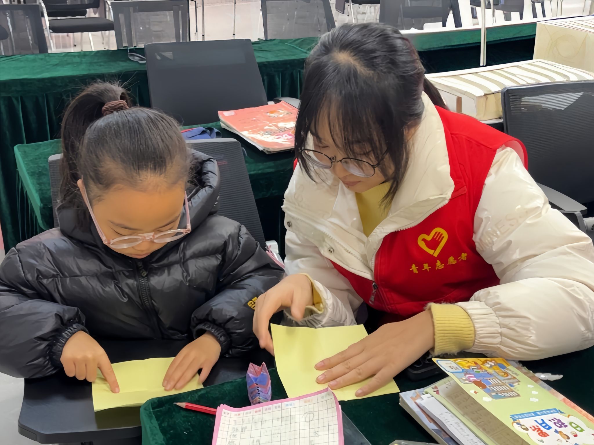 在这里,孩子们不仅能获得细致的作业辅导和纪律指导,还能在志愿者的引导下培养自律意识和自我管理能力。同时,志愿者们还精心策划了一系列丰富多彩的课外活动和游戏,例如,一二三木头人、两人三足、捏橡皮泥、手工折纸等游戏。孩子们在完成作业后便可以参与其中。现场气氛非常活跃。通过这些游戏,孩子们在欢声笑语中培养了团队合作精神,同时锻炼了创造力和想象力。在创意手工游戏中,孩子们发挥自己的奇思妙想,用各种材料制作出独一无二的作品。有的孩子用彩纸折出了可爱的动物,有的孩子用橡皮泥捏出了可爱的小动物。在这个过程中,他们的创造力得到了充分的激发,想象力也在不断地拓展。
