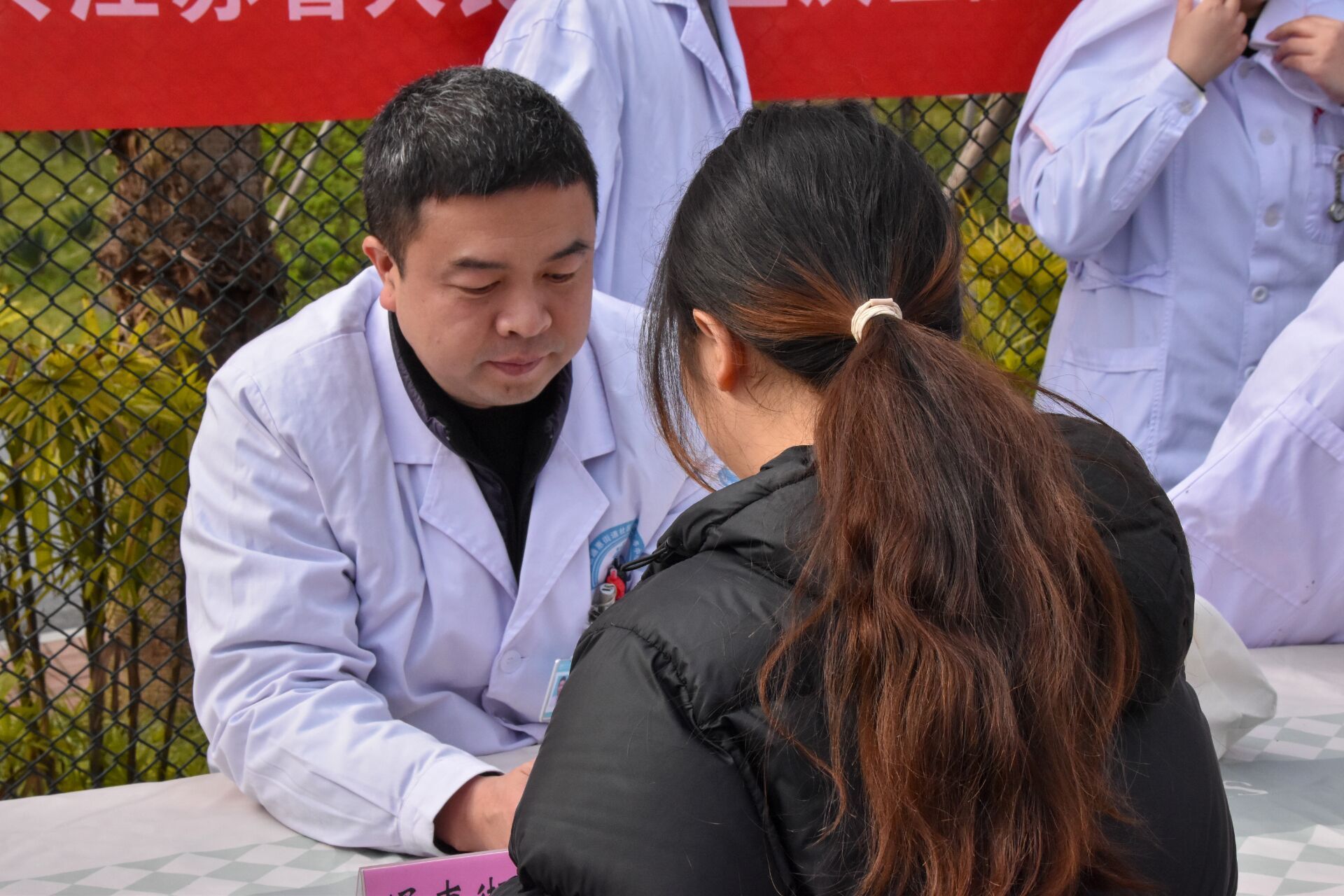 与此同时,新兴社区东城花园的院坝内,气氛热烈。“传声筒”防痨志愿服务专项支队成员们向居民讲解结核病传播途径、症状识别及预防措施,穿插问答互动,引得群众频频点头。现场还设置义诊咨询台,文龙、古南街道社区卫生服务中心医护人员联合支队志愿者为居民免费测血压、解答健康问题,累计发放宣传资料600余份,惠及居民数百人。