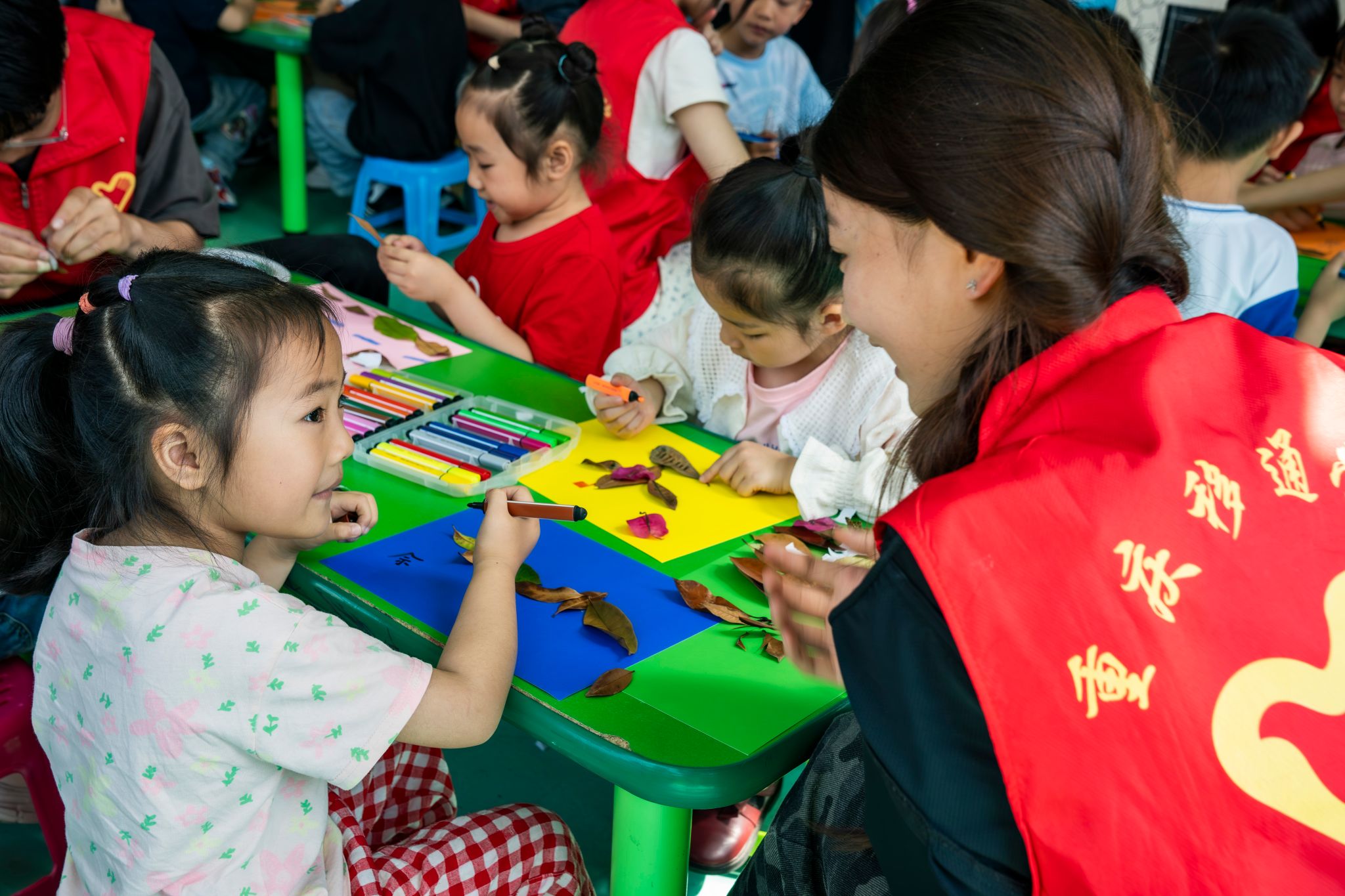 为响应西门子爱绿教育计划,积极传播绿色理念,5月9日,重庆移通学院青年志愿者联合会携手重庆市綦江区文龙街道回龙湾社区新时代文明实践站、水岸幼儿园,以“指尖绿动,童筑环保梦”为主题,开展了一场别开生面的“爱绿”课堂。此次活动以创意与实践为翼,展开环保教育新篇。通过趣味课程与创意手工的结合,志愿者与孩子们共同探索环保的无限可能,将生态文明的种子悄然埋入童真心灵。