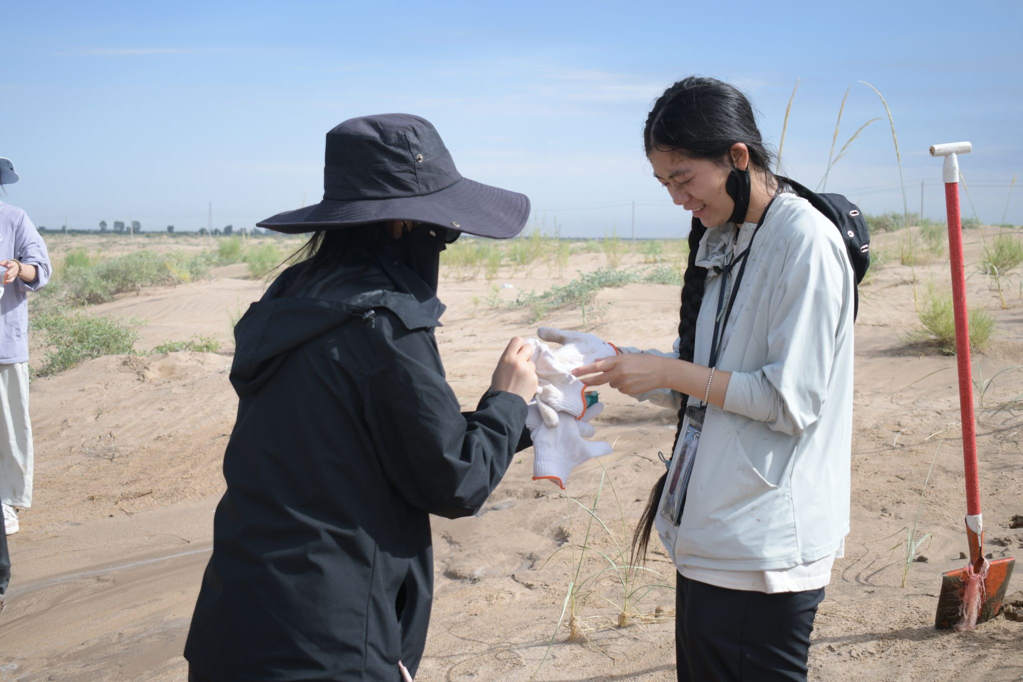 从乡村记忆博物馆馆藏老物件,追溯风沙抗争轨迹;到与治沙人倾心交谈,聆听坚守岁月故事;再到投身维护梭梭树,体悟治沙硬核担当。用实践添绿,在过程中成长,这一路,是与治沙精神的相遇,更是青春向使命的奔赴,愿将这份独家记忆带到世界各地。