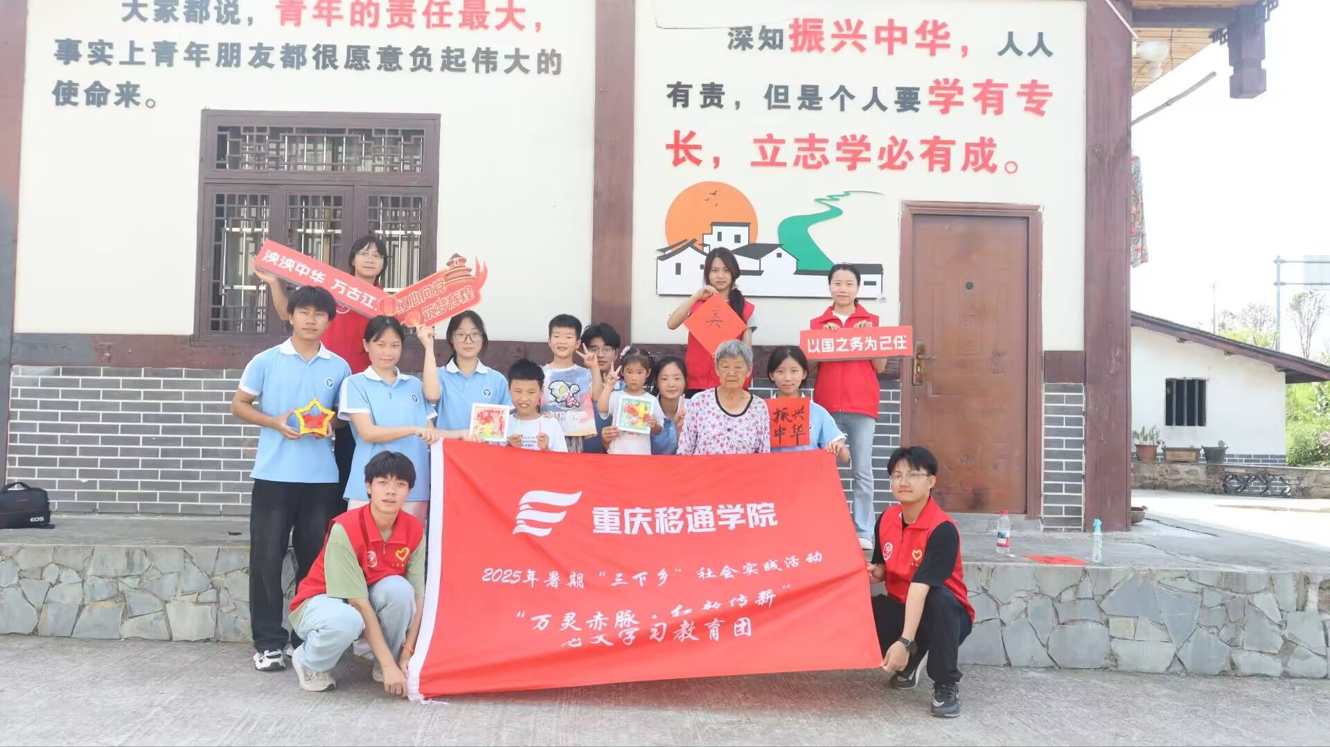 习近平总书记在中华人民共和国成立76周年讲话中提到“青春孕育无限希望,青年创造美好明天,一个民族只有寄望青春,永葆青春,才能兴旺发达”。此次柳乃夫故居之行,并非一次简单的实践活动,而是一场深刻的爱国主义教育。重庆移通学院“万灵赤脉,红韵传薪”党史学习教育团以实际行动践行着传承红色基因的使命,让老人们的回忆成为鲜活的教材,让孩子们的参与成为传承的起点。同时,在乡村营造出浓厚的红色文化氛围,实现了红色精神在代际间的传递。为乡村振兴注入源源不断的青春力量,让红色基因在乡村大地绽放更加耀眼的光芒,激励一代又一代人为实现中华民族伟大复兴的中国梦而努力奋斗。