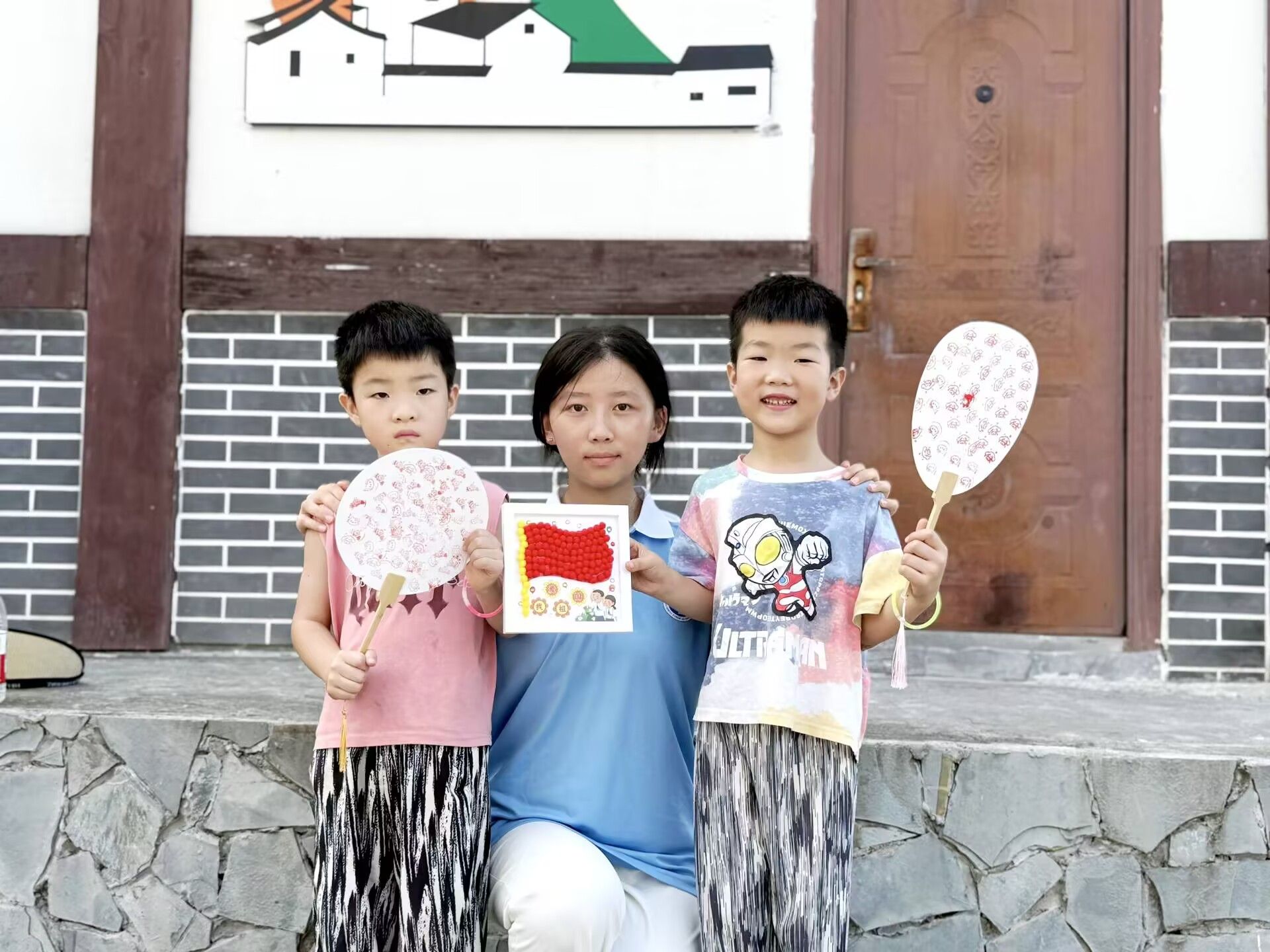 另一边,队员们与小朋友们的互动同样意义非凡。孩子们的脸上洋溢着天真无邪的笑容,在队员的引导下,他们兴致勃勃地参与着各项活动。他们在扇子上盖上自己喜欢的印章,每一个印章都是一颗爱国的种子,在心中悄然发芽;专注地拼接着爱国主题拼图,在一块块碎片的拼接中,国家的轮廓和对祖国的认知逐渐清晰;精心制作精美的DIY拼红船和天安门毛球相框画,用稚嫩的双手表达着对祖国的热爱。当队员们将荧光棒送到孩子们手中时,那点点光亮不仅点亮了孩子们的笑脸,更象征着爱国精神在新一代心中的传承与闪耀。这些生动有趣的活动,以孩子们易于接受的方式,将爱国主义思想融入其中,让红色基因在潜移默化中浸润童心。