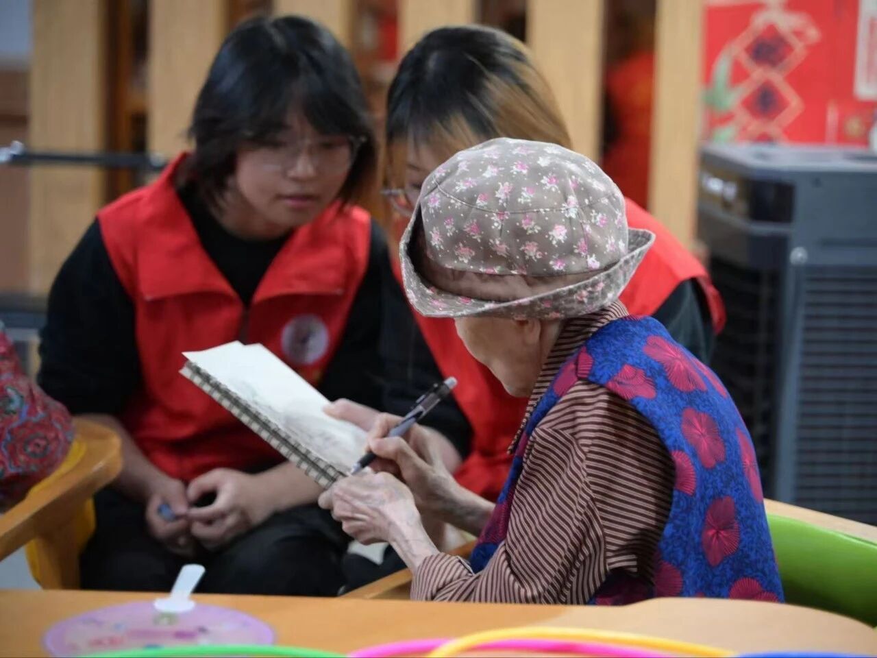 此外“肖像绘制区”更是温情满满,志愿者们认真观察长辈的神态,用马克笔一笔一划勾勒轮廓,将长辈的笑容定格在画纸上。志愿者笔下的每一笔线条,都承载着对老人们的尊重与关怀,定格在画纸上的笑容,既是对长辈当下美好状态的留存,更成为一份可长久珍藏的纪念,让这份跨越年龄的善意与温情,在时光里持续传递、永不褪色。