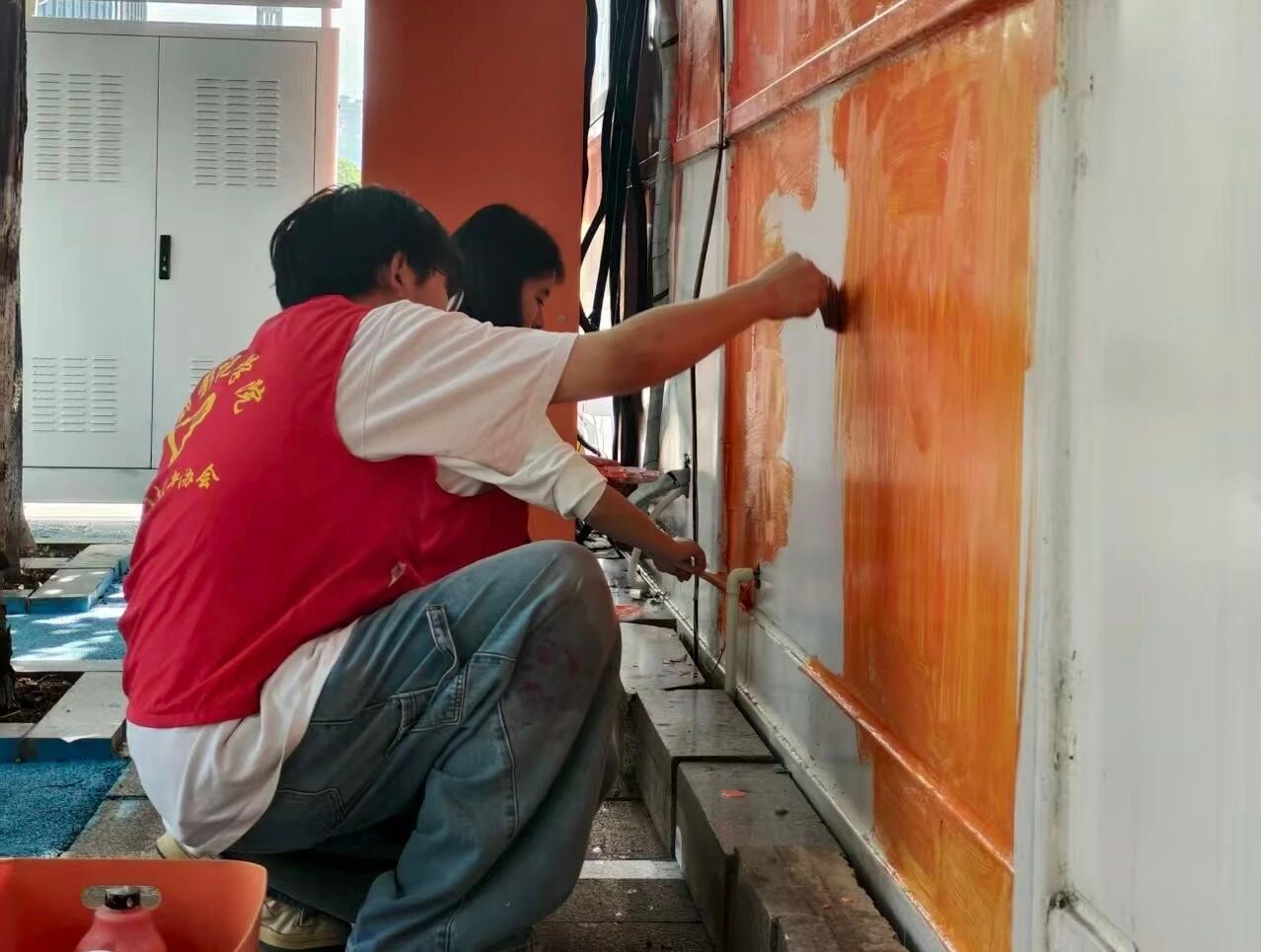 2025年9月21日,重庆移通学院戏影青协联合“益”术家支队的志愿者们走进红星广场,开展了一场以“艺绘社区·剧映美好”为主题的墙绘活动。志愿者们以笔为媒、以彩为墨,将艺术创意与社区文化深度融合,为广场的墙面注入全新活力,用实际行动助力社区环境美化。