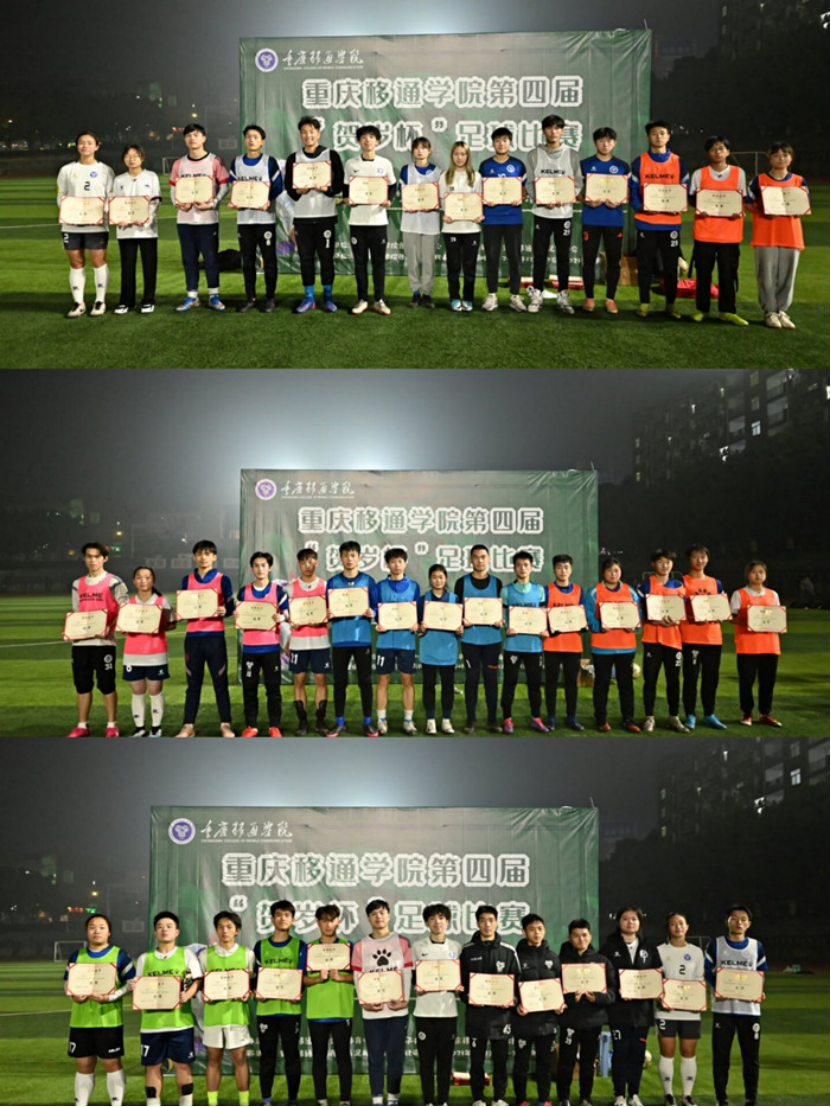 夜色降下帷幕,通过两天19轮的比赛此次“贺岁杯”足球比赛也圆满结束,最后是颁发本次比赛的冠、亚、季军以及留影活动。期待重庆移通学院足球更好的明天!