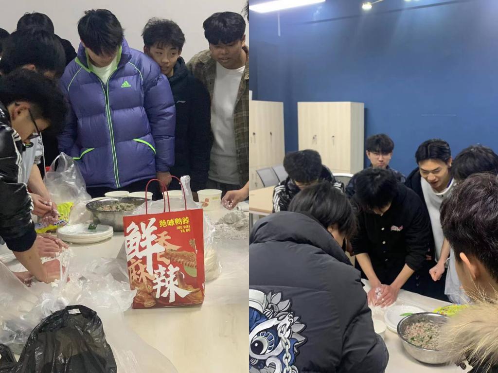 相约一个时间,共聚一个地点。男子足球队和他们的教练围在了一个本来不大的桌子面前,上面摆放着的肉馅、饺子皮、汤圆……在他们的摆弄下,一排排形状不一的饺子,一排排大小不同的汤圆,展现在了我们的面前。饺子,不仅体现了我们男子足球队的动手能力,更展现了我们团结一致,顽强拼搏的品德。正如我们的口号一样:“移通少年,一往无前,绿茵场上,法力无边。”