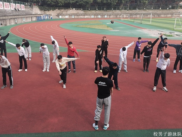 校男子游泳队本月以恢复性训练为主,主要围绕体能提升与技术恢复性训练为基准,内容包括20分钟匀速长跑,单杠练习,自由泳与蛙泳陆地泳姿模仿,队员们能够很快进入状态,更轻松的融入到新学期的训练与学习生活中。