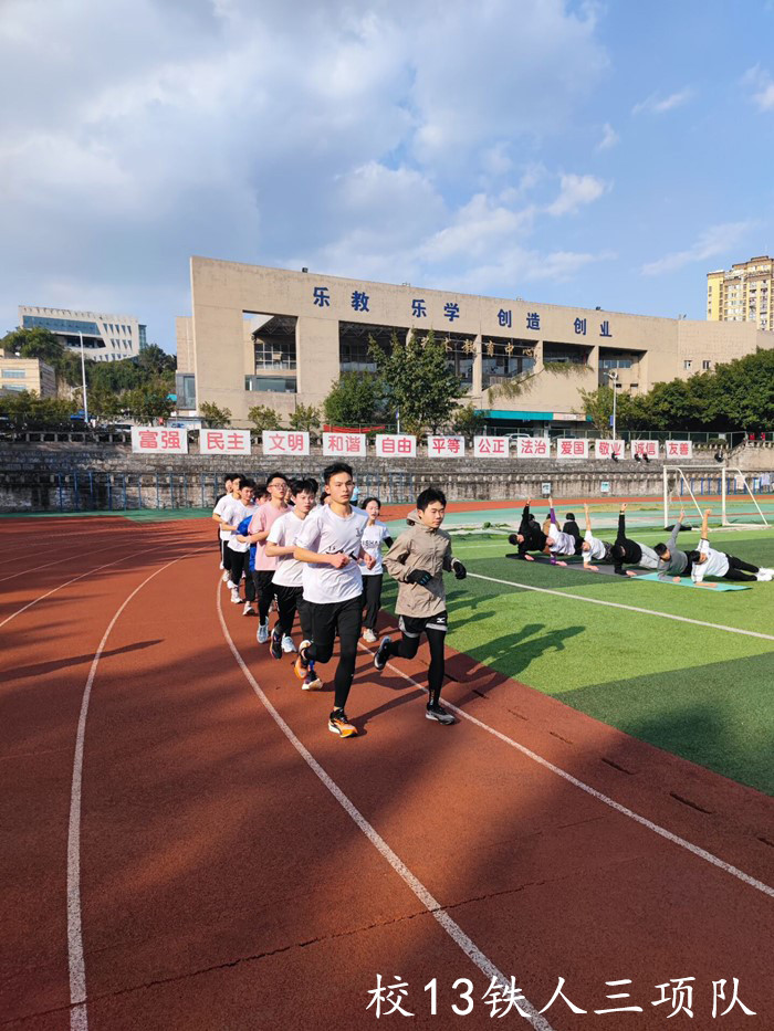 2月21日校湘渝铁人三项队以黄静教练带领的一场早操为起始点吹响了恢复训练的号角。恢复训练以有氧跑、恢复耐力为主,身体素质训练为辅,让队员们更快地恢复训练状态,从而进行下一阶段的中等强度训练。