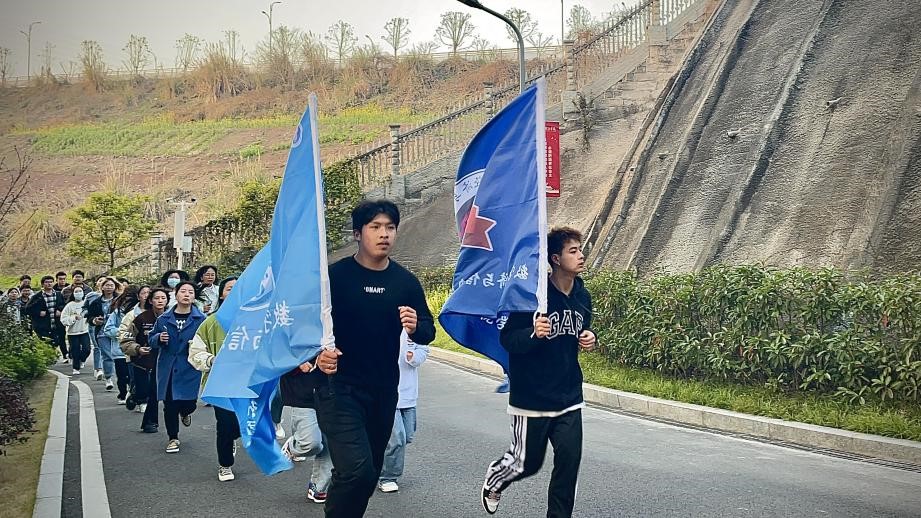 热身训练结束,也来到本次活动最重要的环节。在两位领跑人的带领下,同学们沐浴着双栀书院的夕阳,踏上奔跑的愉快旅途。