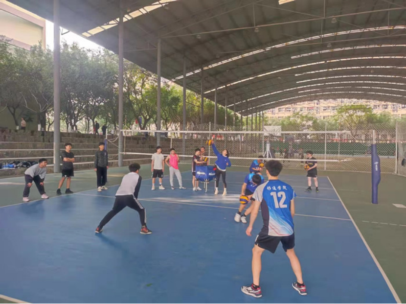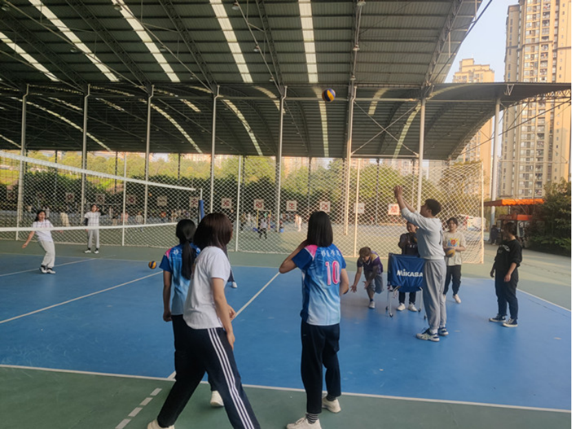 训练工作:开学初主要以身体恢复训练和球感恢复为主,从体能到技术,进行全方位的锻炼与强化。技术方面在巩固基本传、垫、发球技术的同时,进行攻防配合训练,使队员们能够加强比赛场上配合能力,更好的为接下来的重庆市级大学生室内排球比赛做准备。