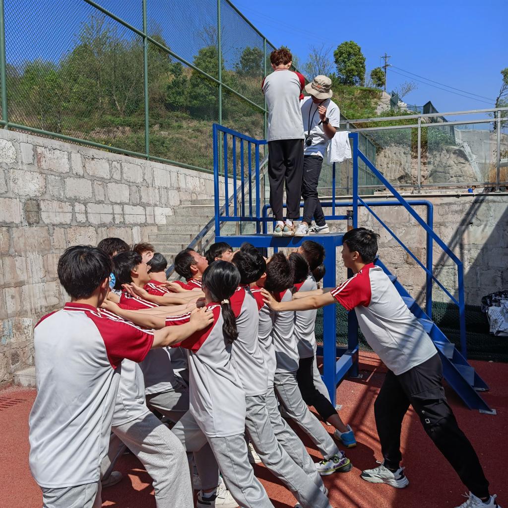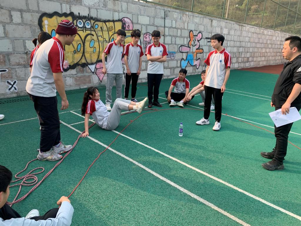 刚刚组建完成的小队队员之间还有些许陌生,在展示队名、队歌、队训后,伴随着老师讲解完课程相关的简介和注意事项后,在保证课程目的能成功实现的前提下具有良好的竞争环境、增强学生之间的凝聚力,锻炼学生相互之间团队的沟通、配合等,同学被随机分成四个小组,以小组为单位挑战各种项目。