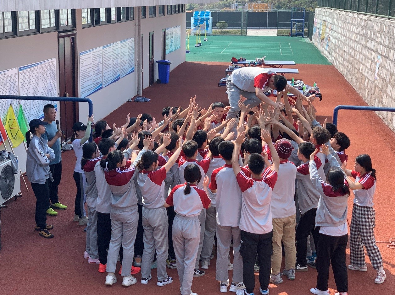 在有限的时间里小队成员需要集体穿过危险重重的“电网”,每一个电网只能一名同学穿过,如何在有限的时间里合理分配“电网”和成员间的相互配合二者缺一不可。紧张的气氛使得同学们在挑战途中全神贯注,更是在这个环节明白每个人都是团队中不可或缺的一部分,自己的一言一行甚至一些小小的细节都会使得小队前功尽弃、挑战失败。而挑战成功带来的巨大成就感也使得每支小队的成员越来越有归属感。