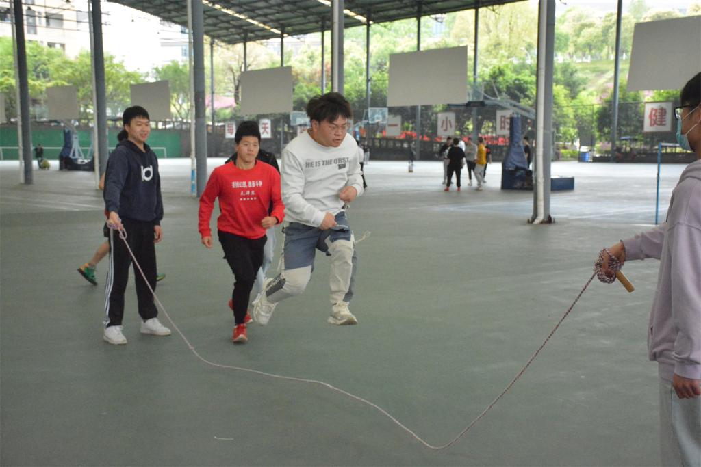 单人挑战中,他们舞动的跳绳,展现出青春的活力,每一次鞭挞地面就宣泄着选手的激情与热血;团体跳绳中,体现出选手间的默契,当自己和班级中的同学们齐心协力完成比赛,象征着同学间的关系越来越紧密。