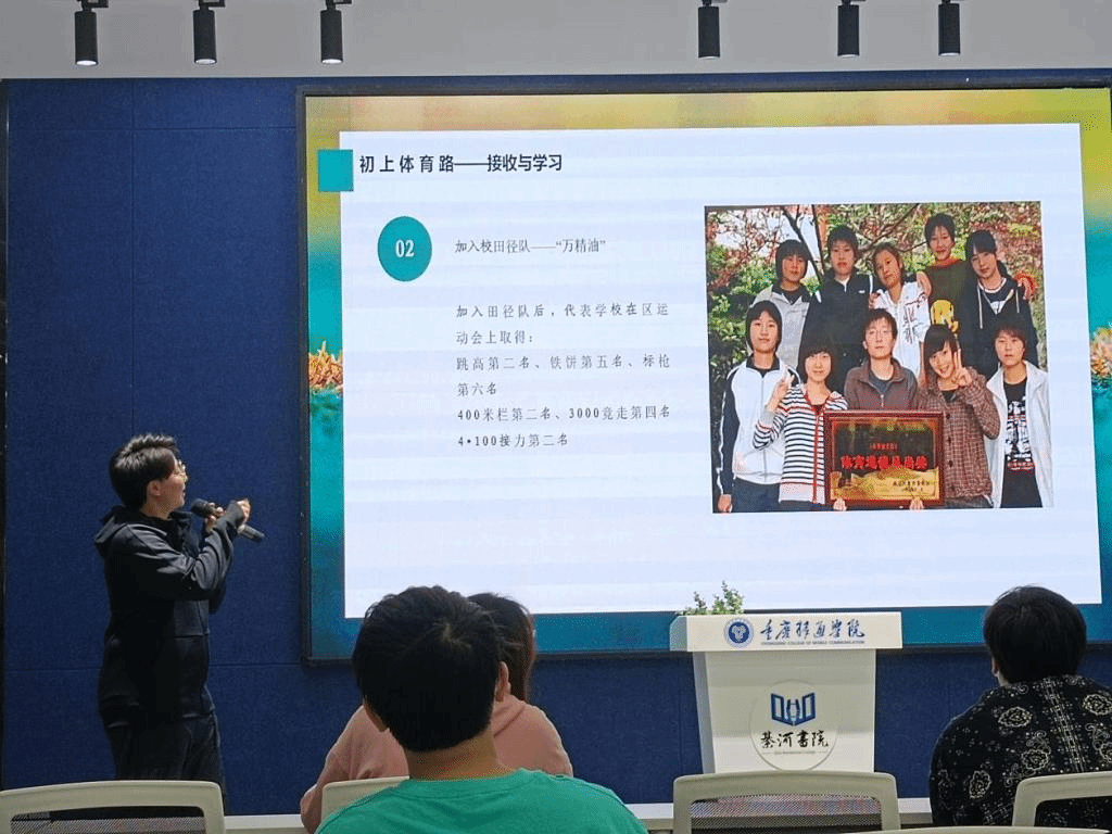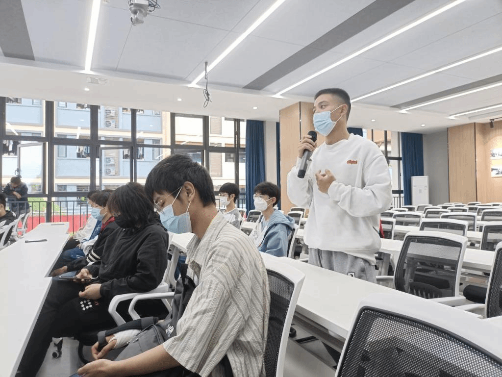 曹老师分享后,同学们也积极参与到自由交流的环节。软件工程6班的唐源同学说到,他从小就在训练跑步,高考的时候因为脚受伤而暂停了运动员之路,进入大学后,积极加入校足球队,参与学院运动会,做自己喜欢的事情,再累也很快乐很享受,不仅是体育,同学们还可以找到有很多其他的兴趣爱好,来充实自己的大学生活。