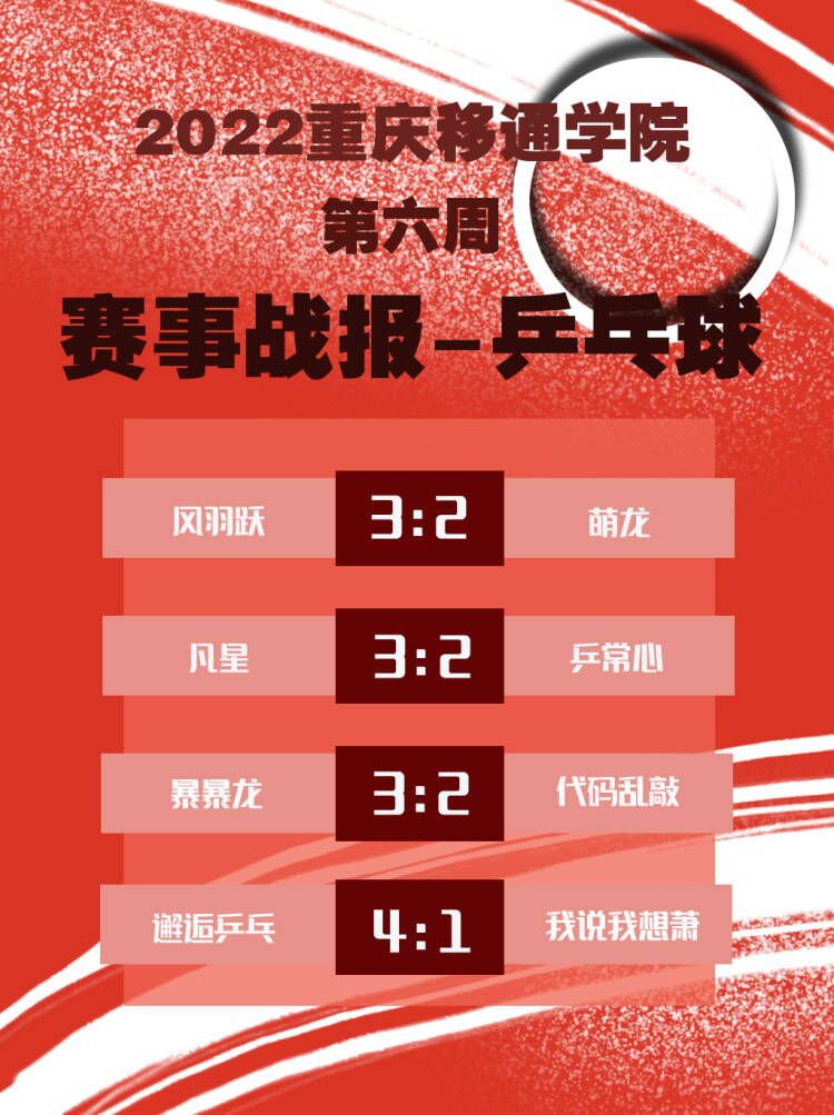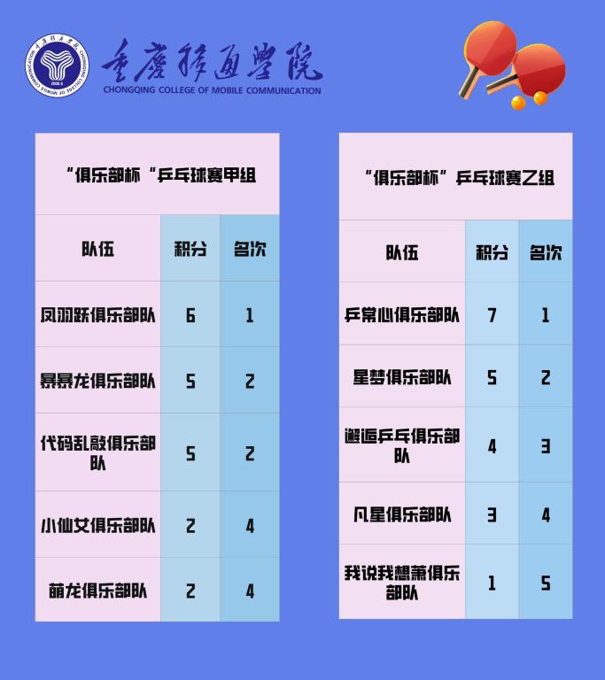乒乓球俱乐部的每一位成员都发挥得十分出色,赛出了各个俱乐部的水平。羽毛球俱乐部赛事活动于本周三继续开展,各个俱乐部的比分十分紧张激烈,积分赛你追我赶,吸引了众多同学在场外观赛。下面是本周各赛事的战报。