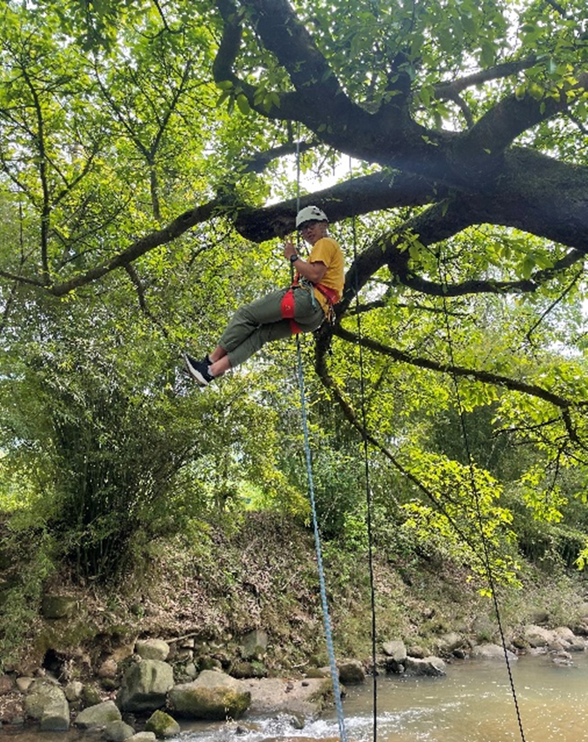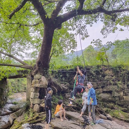 写一首关于春天的故事,将心扉装进满满绿意和希冀,告别三月,展望四月,携梦想齐飞。为更好利用周边环境,持续打造特色营地课程,激发校区学生探索自然的兴趣、满足超越其自我的巅峰体验。4月9日至10日綦江校区户外运动队三位教练,组织户外队部分队员(自愿原则)进行了单日多项目户外课程的前期实践准备。具体课程内容为户外徒步过程中日常项目,分别为:登山徒步、单绳技术、攀树、溯溪等几类户外体验课程。