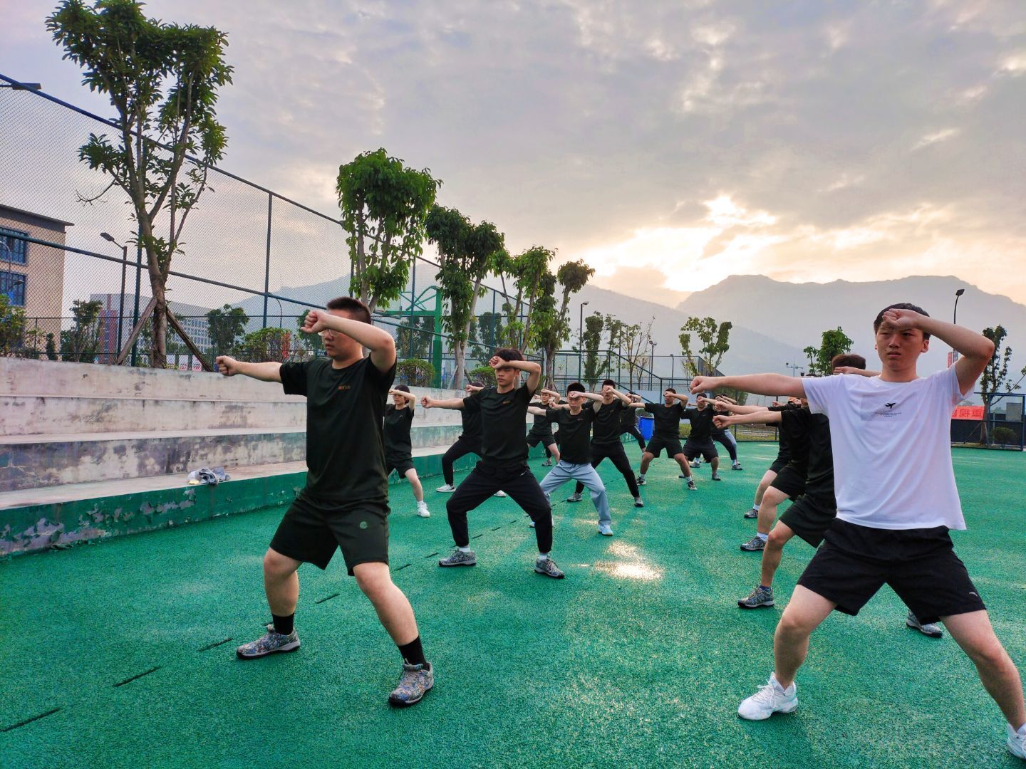 迷彩俱乐部的训练始于晨,止于暮,社员们在操场上尽情挥洒汗水,挥舞着我们炽热而又充满活力的青春,让我们共同用饱满的热情构建“迷彩”蓝图。